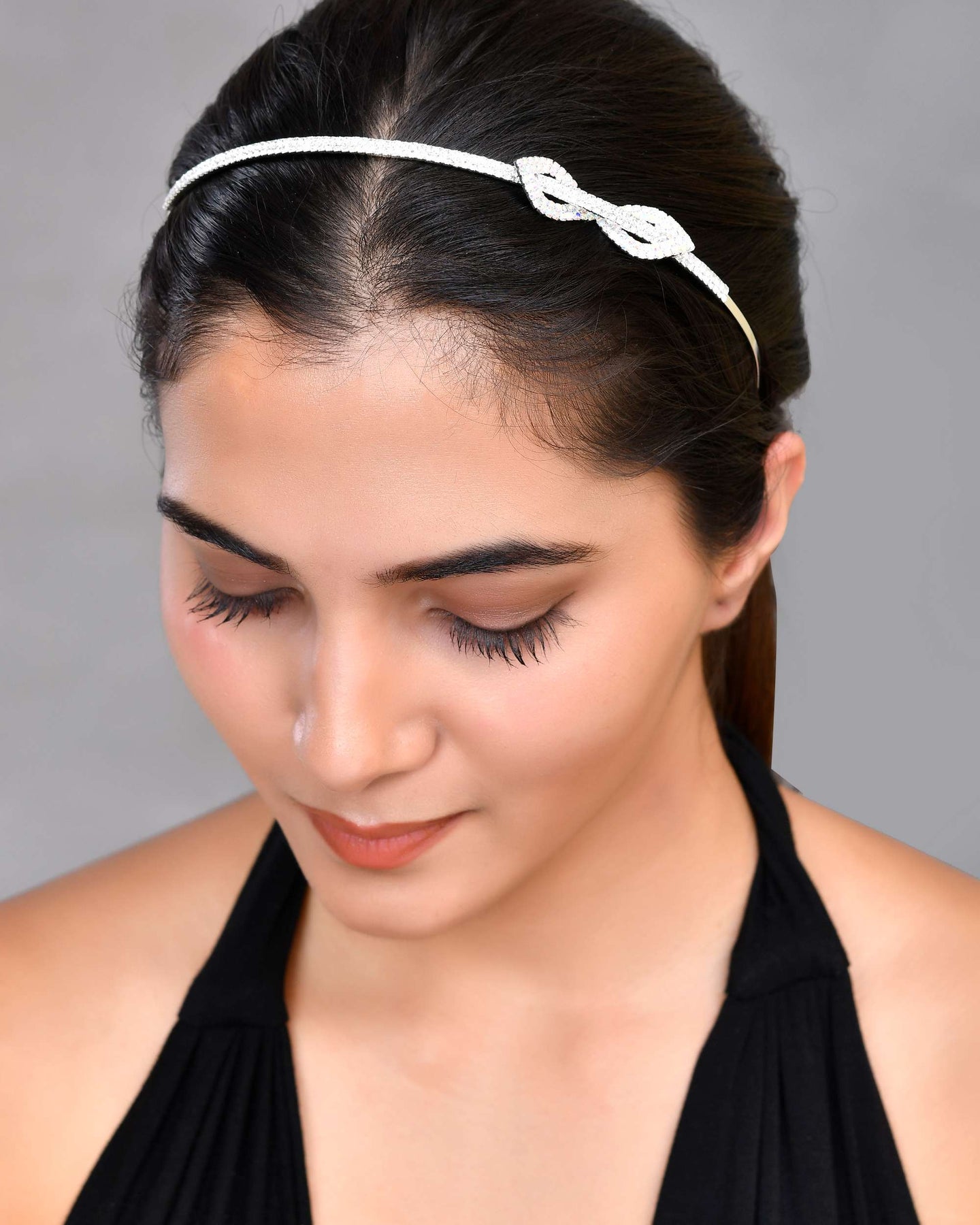 Add a touch of charm to your hairstyle with our Silver Plated Bow Shaped AD Studded Hairband. This exquisite accessory features a delicate bow design adorned with sparkling AD stones, making it perfect for both everyday wear and special occasions. The silver plating ensures a timeless shine, while the comfortable fit keeps it securely in place. Elevate your look with this stylish and playful hairband!
