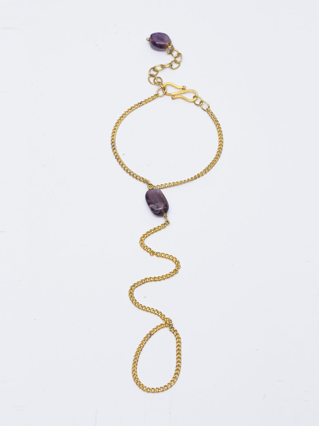 Purple & Hathful Bracelet With Natural Stone &; Category Of Jewellery Is Hand Jewellery; Sub Category Is Bracelets; Ideal For Women; Base Color Is Purple; Gemstones Used - Natural Stone; Plating Is Gold-Plated; Base Metal Is Alloy; Other Material Used - ; Size Is 2.6; Adjustable - Yes; Weight Is 5 Gms; Mesaurements - Diameter Of Bracelet =6.03 Cm; Circumference Of Bracelet = 18.95 Cm; Content