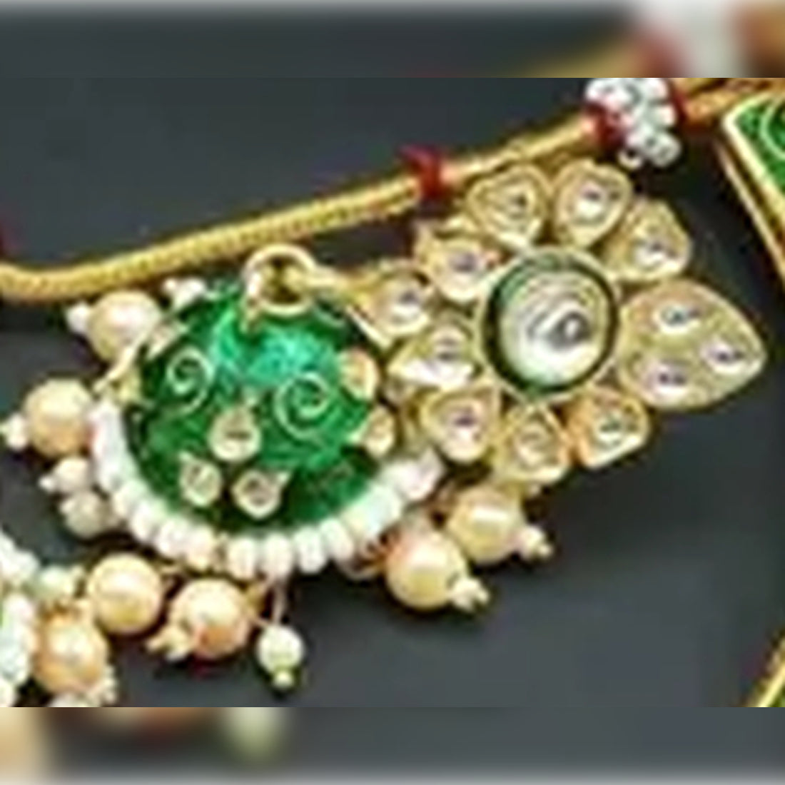 Luxurious Green Kundan Choker Necklace Set - Traditional Indian Handcrafted Gold-Plated Jewelry With Earrings