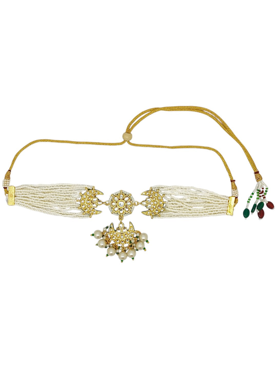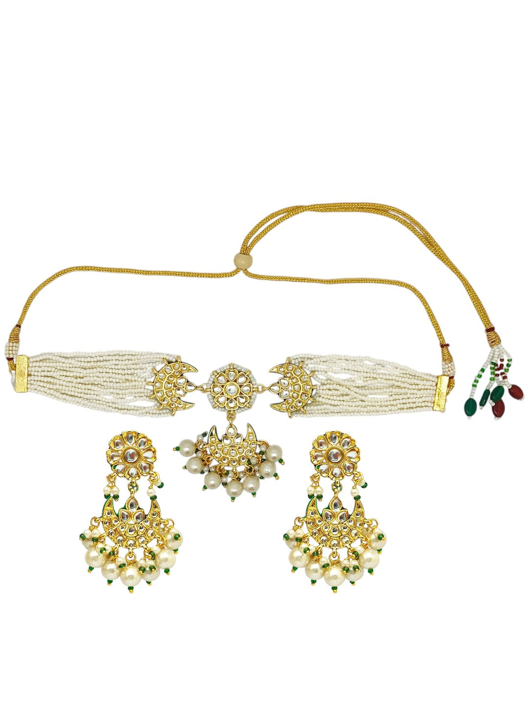 Gold-Toned Paachi Kundan Chandbali Choker Necklace Studded With White Kundan And Beads.Secured With Drawstring Closure. A Pair Of Matching Chandbali Earrings, Each Secured Post And Back Closure.