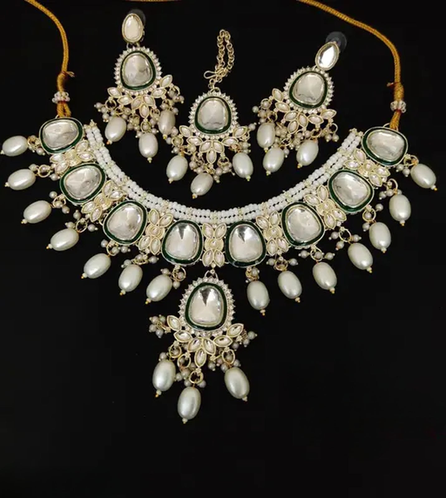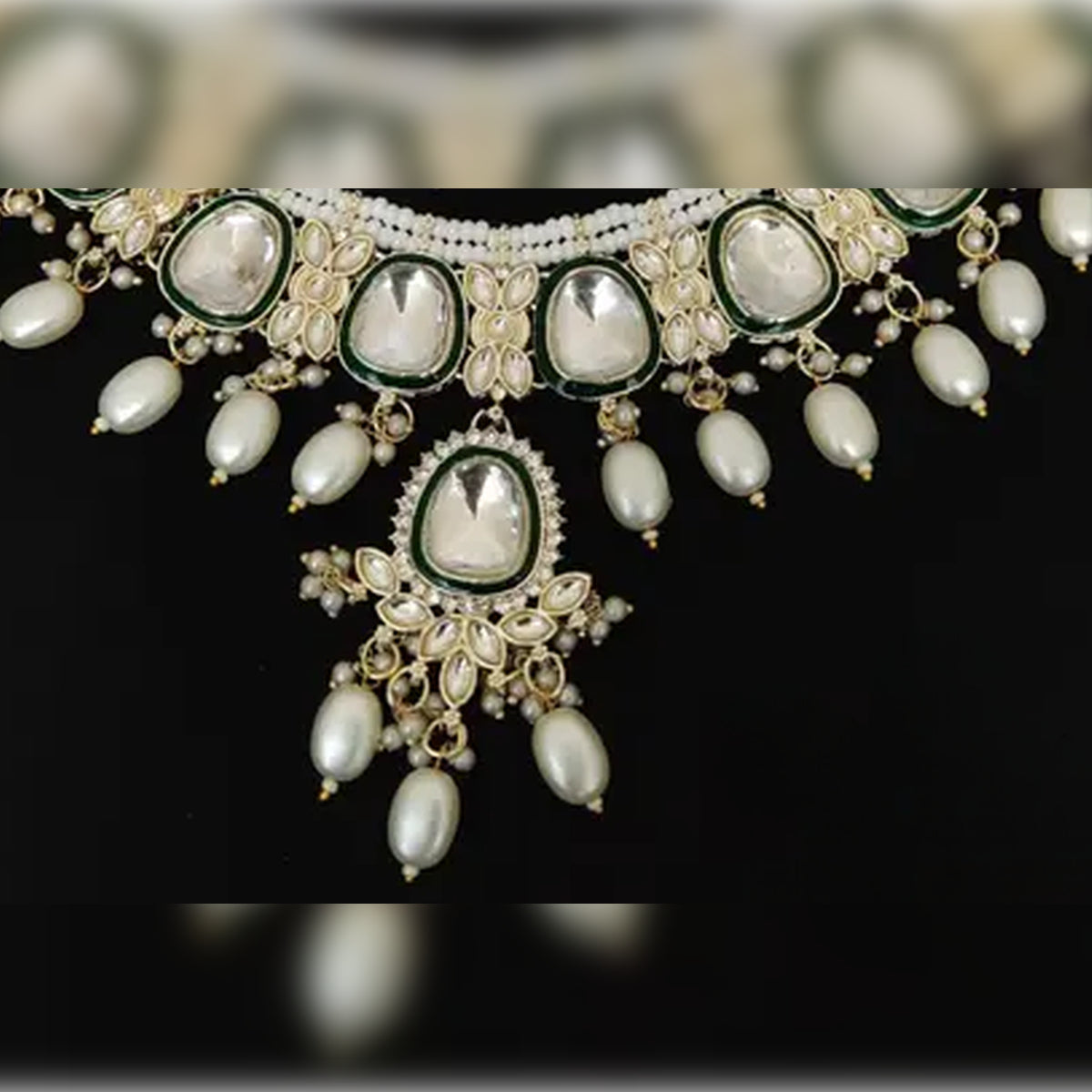 • Delicate Green Enamel Accents Framing Each Kundan Stone