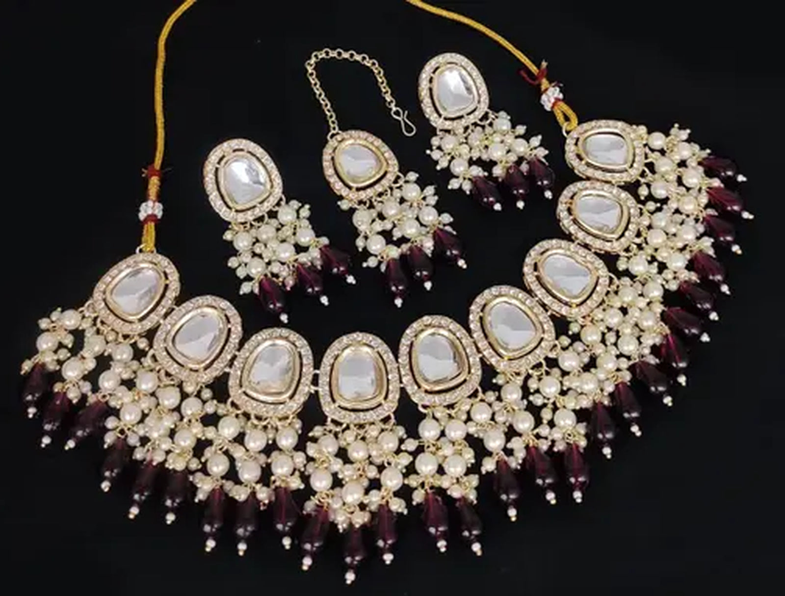 • Complete Bridal Jewelry Set Includes Necklace, Earrings, And Maang Tikka