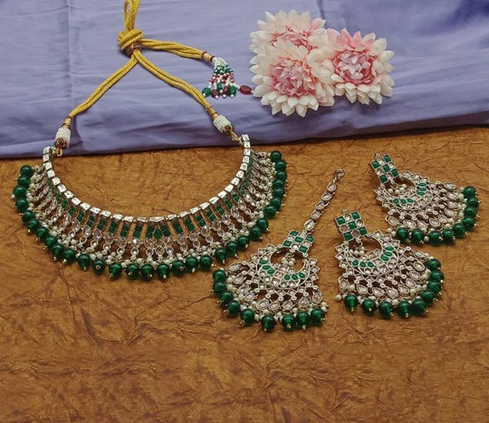 Elevate Your Ethnic Ensemble With This Stunning Indian Jewelry Set Featuring A Choker Necklace And Matching Earrings. This Exquisite Set Combines Traditional Craftsmanship With Timeless Elegance, Perfect For Weddings, Festivals, And Special Occasions.
