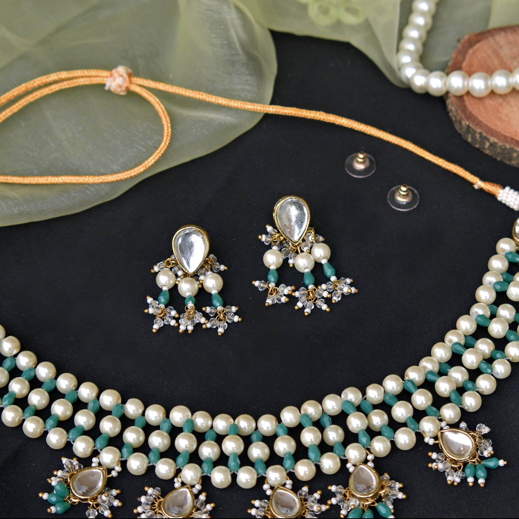 Pearls Are Those Regal Silhouettes That Look Classic, Yet Blend Beautifully In The Modern Times. From, Work To Party To In-Betweens; Pearls Always Seem To Be The Perfect Jewelry Companions. Take The Center Stage With This Traditional Ethnic Jewelry, Handmade With Intricacy. The Necklace Embellished With Faux White Pearls Will Be Perfect With Traditional Attire To Look Gorgeous In No Time.