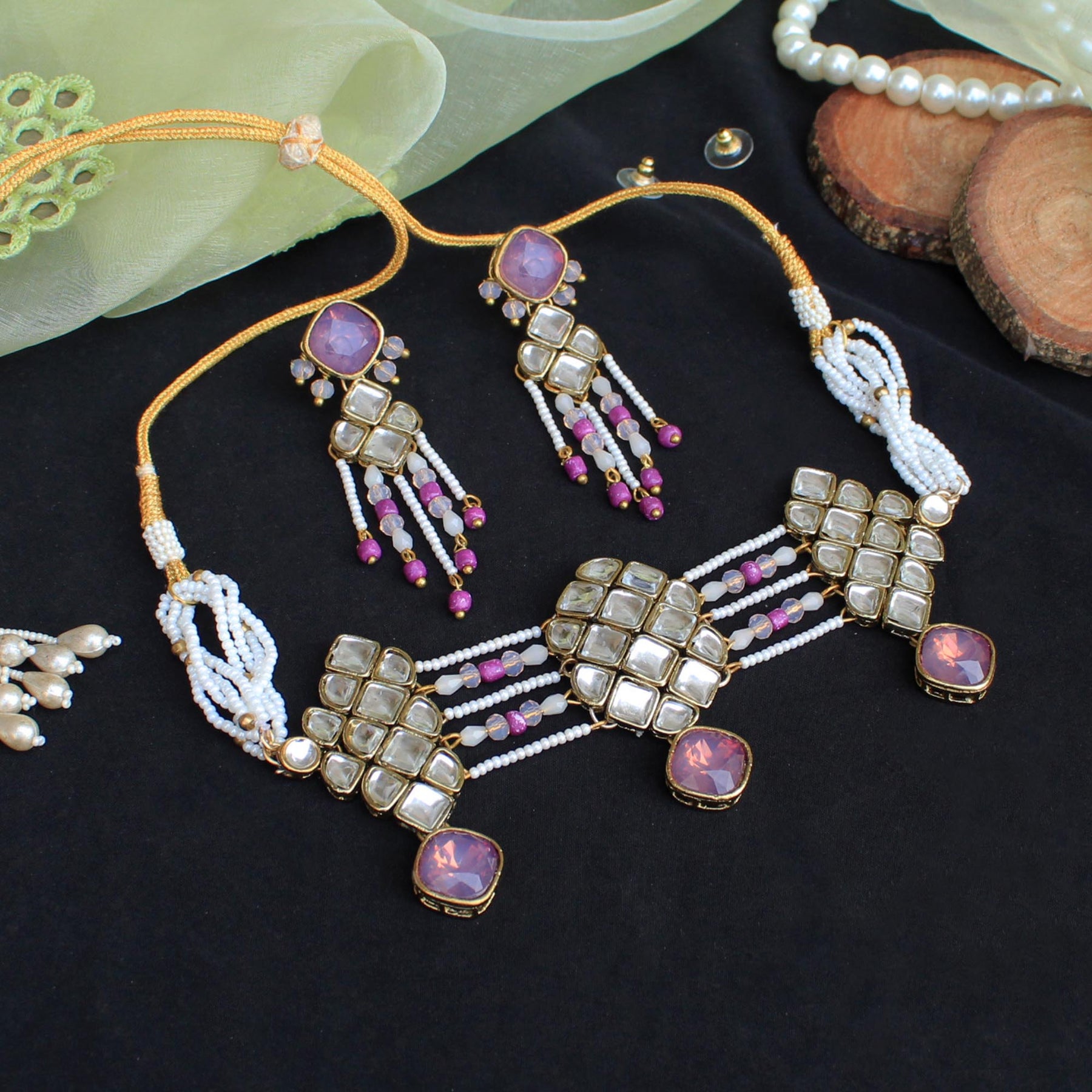Embodying Elegance And Beauty, Our Delicate Kundan Set Is Ideal For Women With A Classic Choice! Scintillating Kundan Choker With Purple Stone Drops And Matching Earrings Is Unique. Pair This Accessory With Your Favorite Outfit And Watch The Spotlight Shine On You.