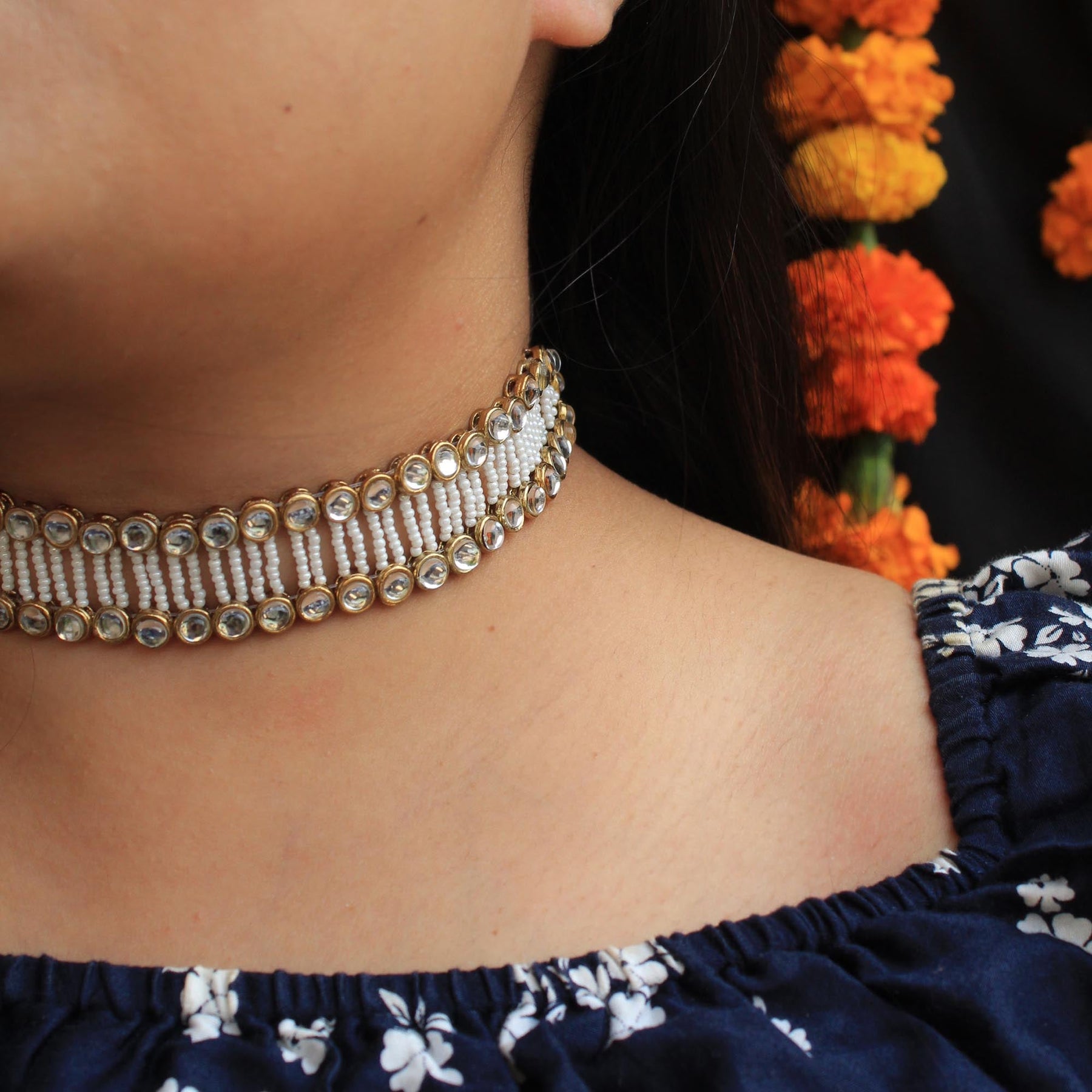 Ethnicity At Its Best In This Elegant Pearl Kundan Choker. It Is Intricately Handcrafted