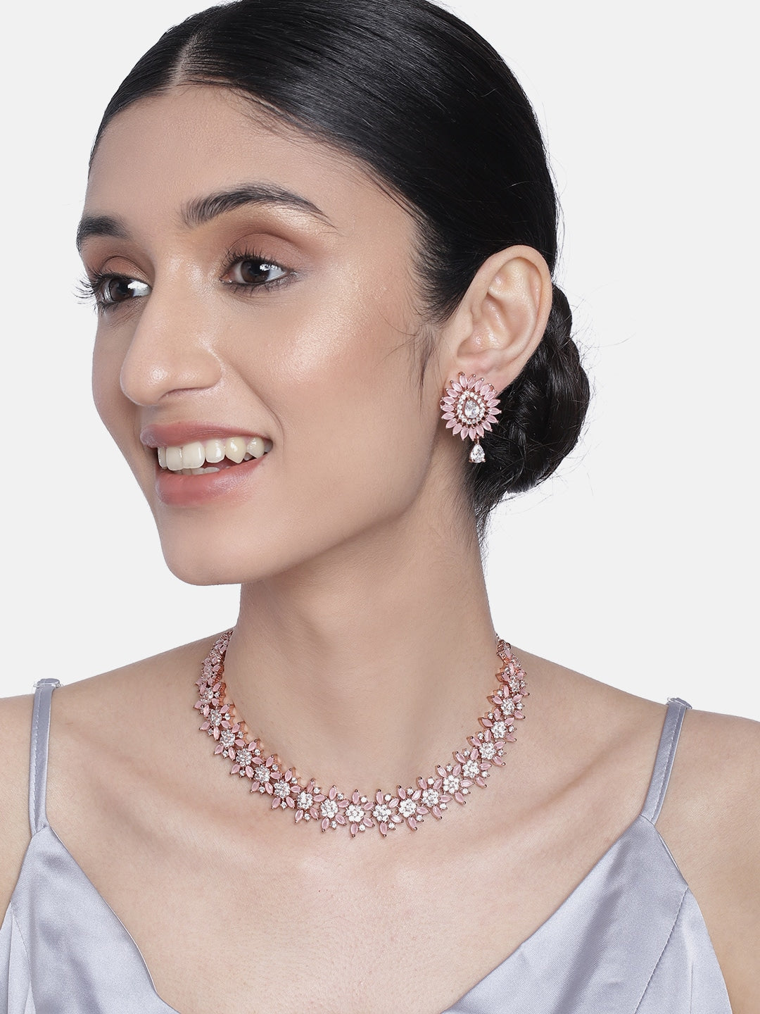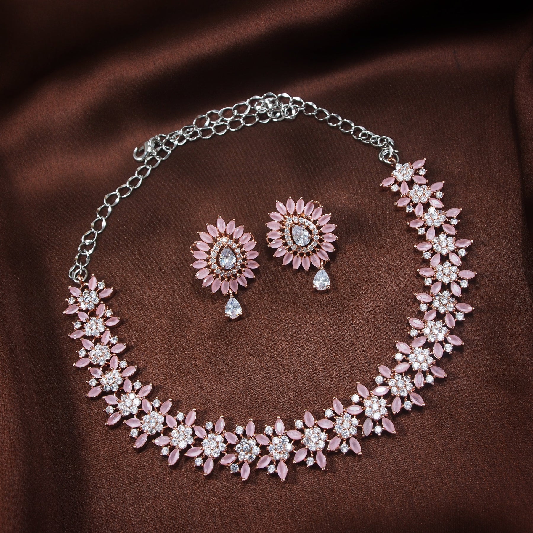 Upgrade Your Everyday Elegance With This Chic Cubic Zirconia American Diamond (Cz Ad) Necklace Jewellery Set, Designed For Women Who Appreciate Affordable Glamour. The Carefully Crafted Necklace And Earrings Feature A Stunning Interplay Of Cubic Zirconia And American Diamonds, Providing A Sophisticated Sparkle Suitable For Any Event. This Artificial Jewelry Set Effortlessly Combines Style And Budget-Friendly Luxury, Making It A Must-Have For Those Seeking A Touch Of Refinement In Their Accessories Collection. Embrace The Allure Of Simplicity And Sophistication As You Adorn Yourself With This Versatile And Eye-Catching Set, Perfect For Enhancing Your Everyday Look Or Adding A Touch Of Glam To Special Occasions.
