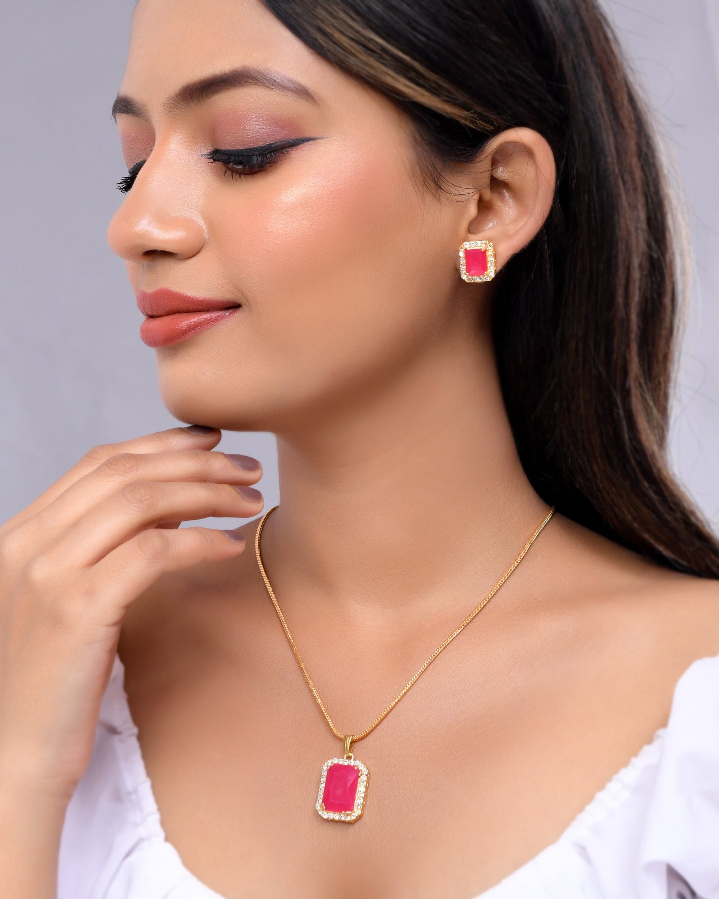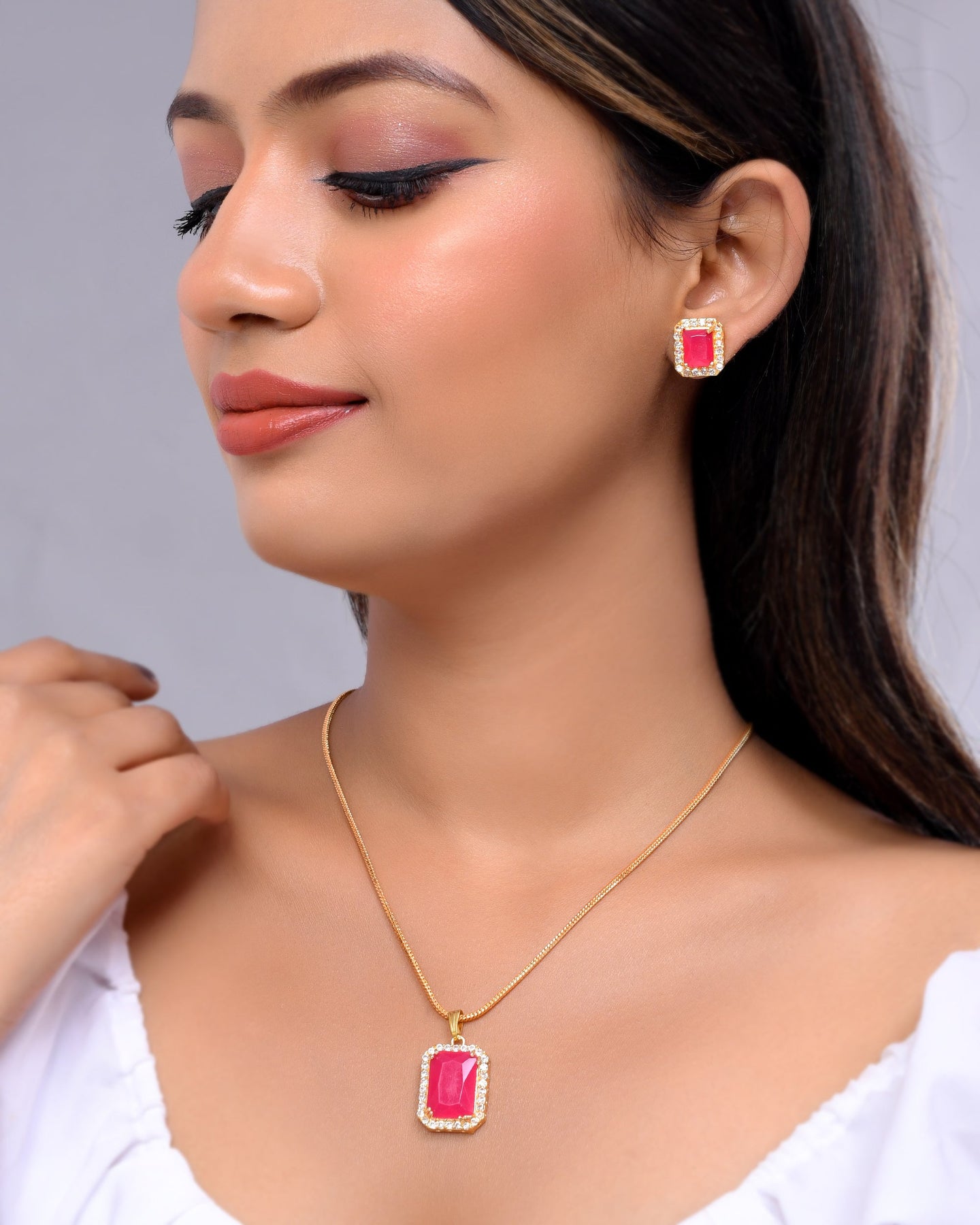This Pandent Set With Earrings For Women Is Made Of Stone Beads Which Is Durable And Long-Lasting.