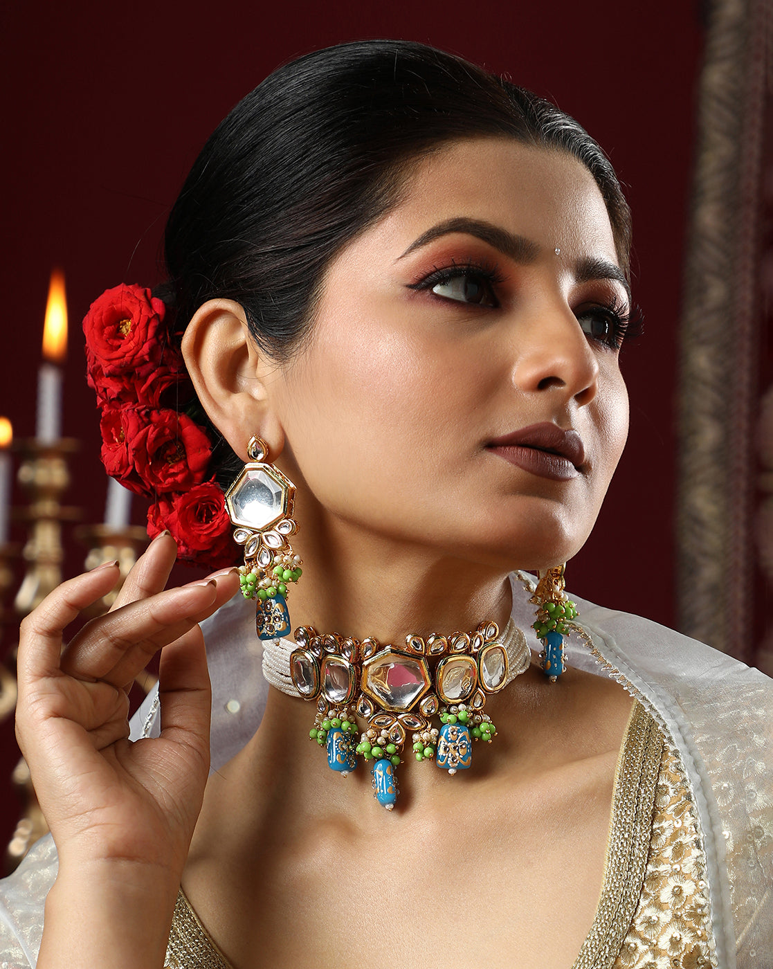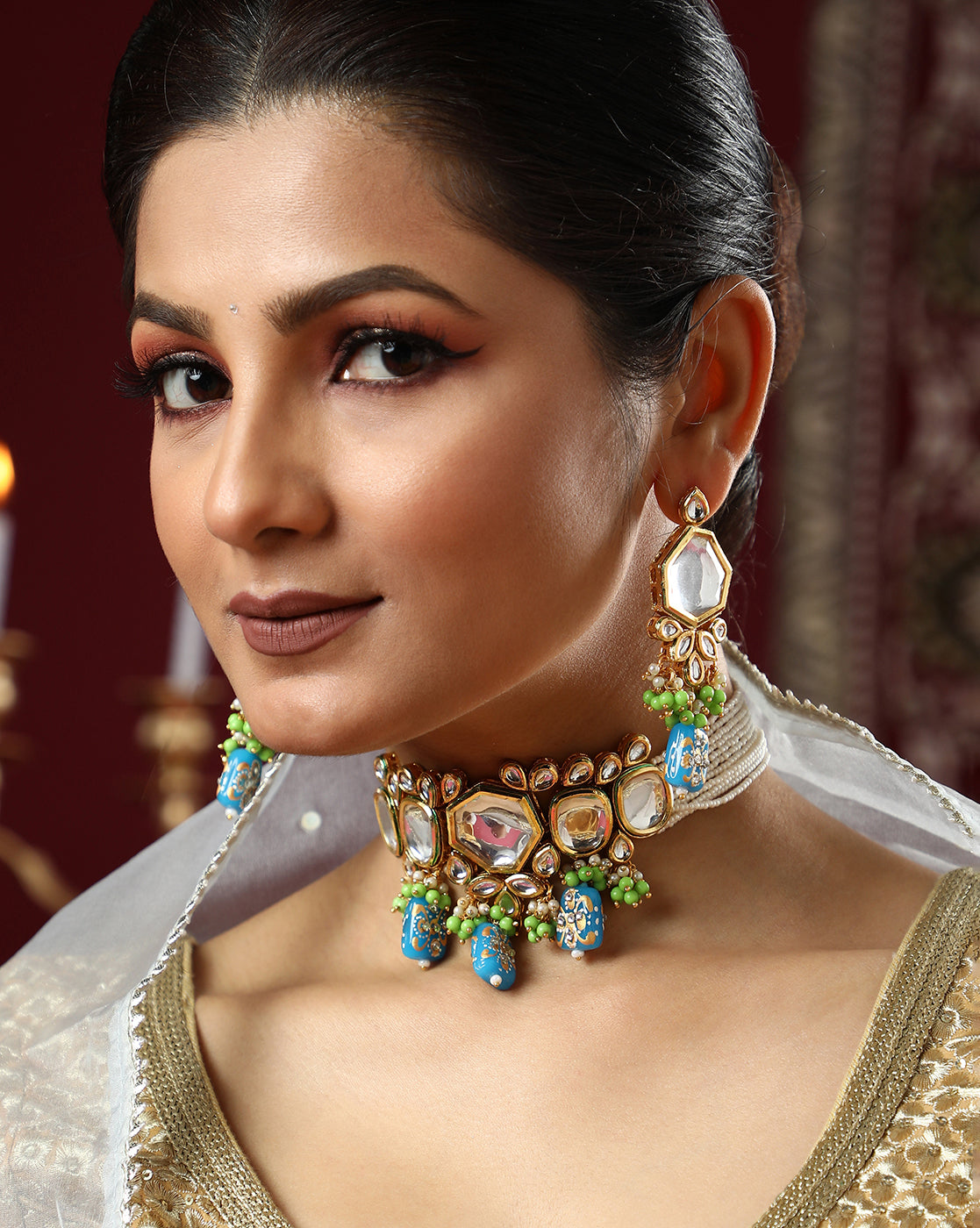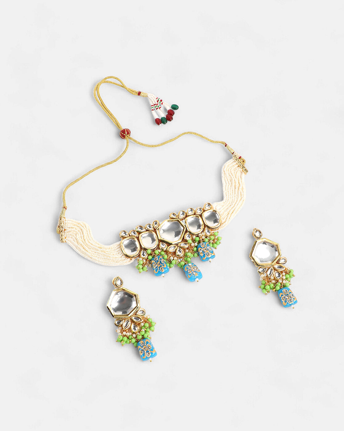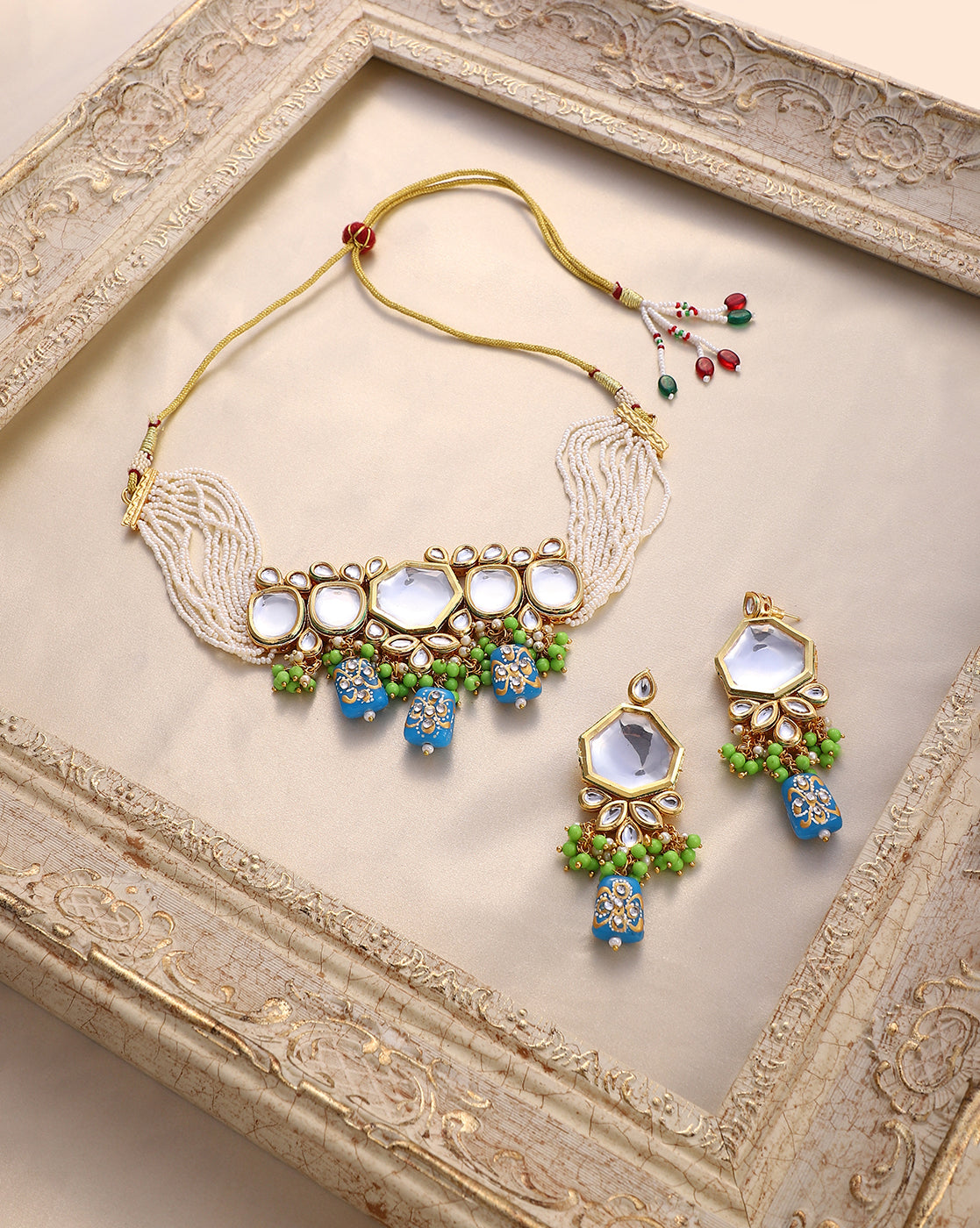 Women's Azure Blue & Kelly Green Plated Jewellery Set - Sohi
