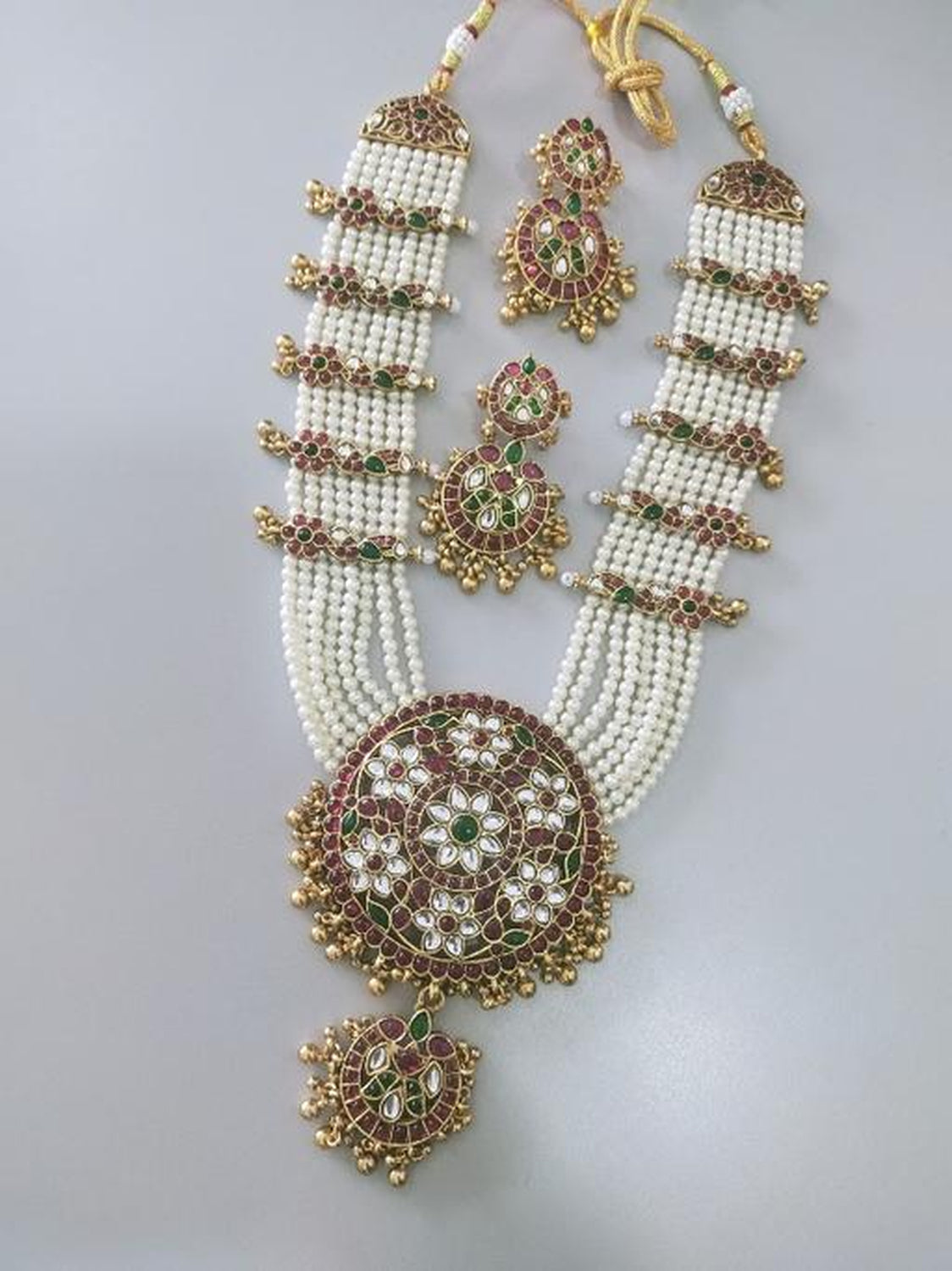 Intricate Kundan Work In Rich Red, Green, And White Tones