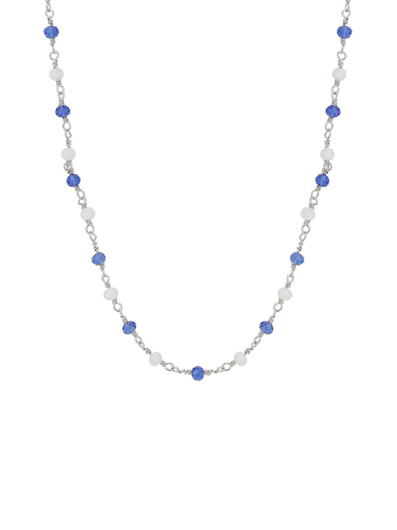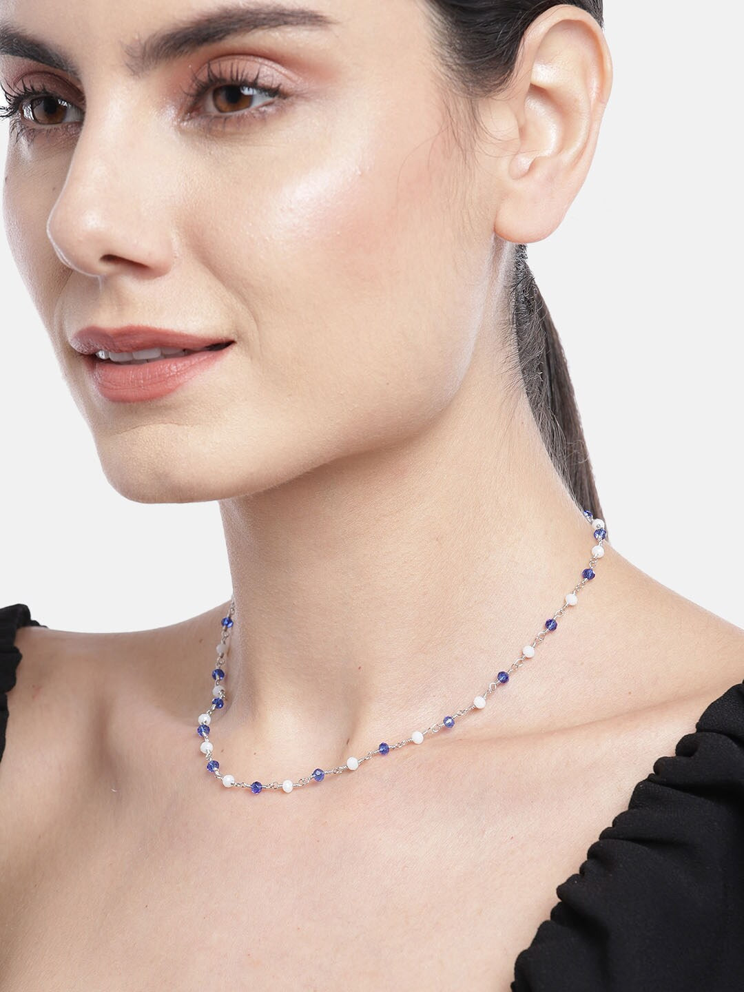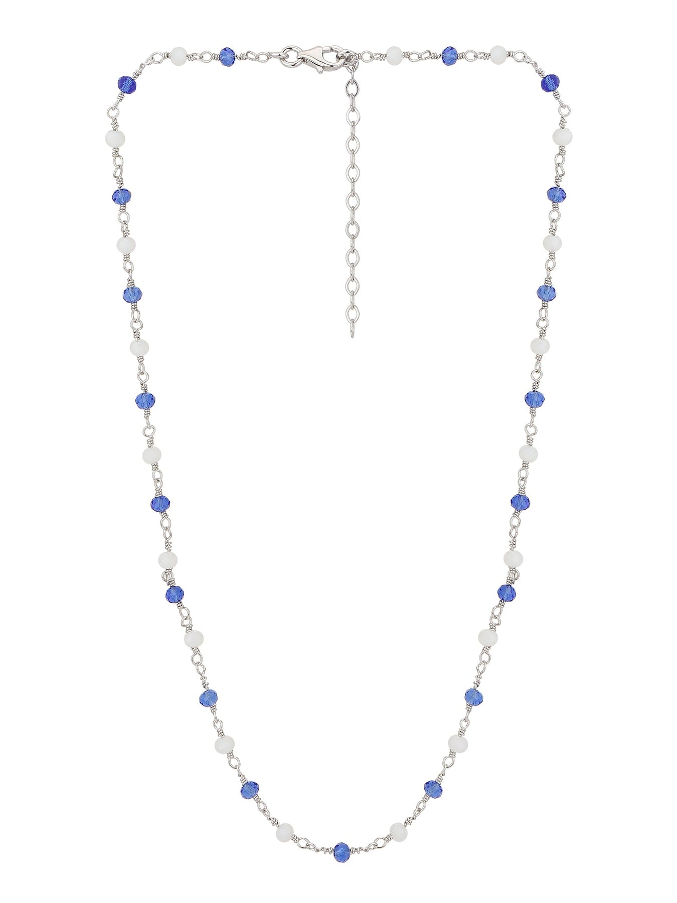 Carlton London Silver-Toned Blue Beaded Brass Rhodium-Plated Necklace
