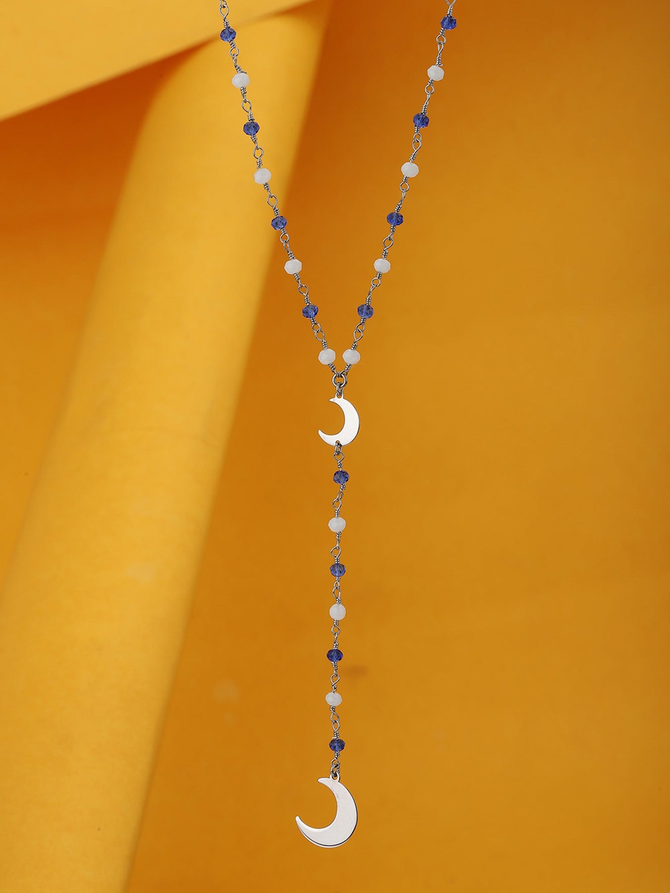 Carlton London Silver-Toned Blue Brass Rhodium-Plated Necklace