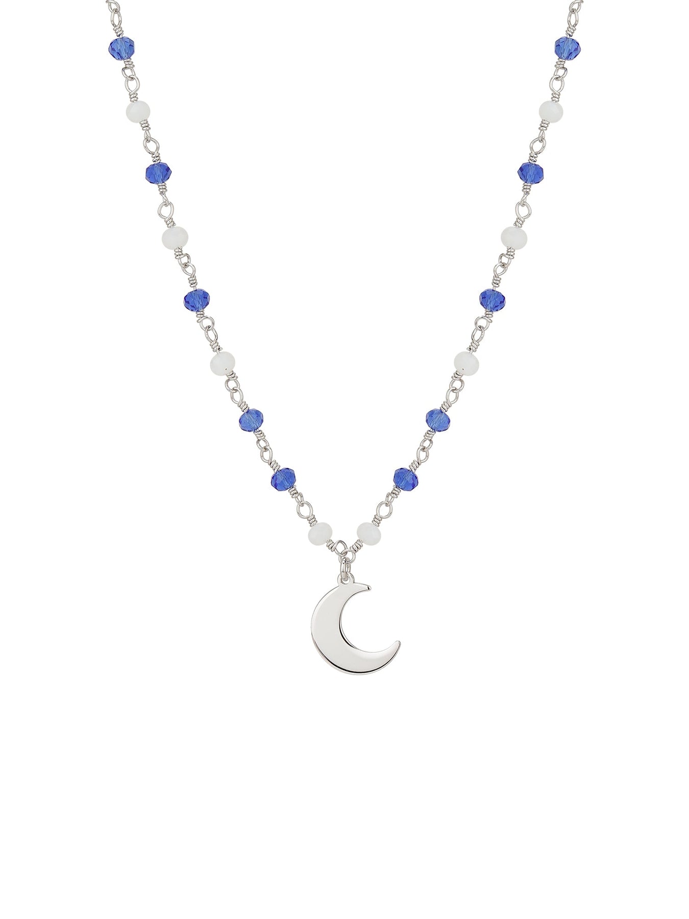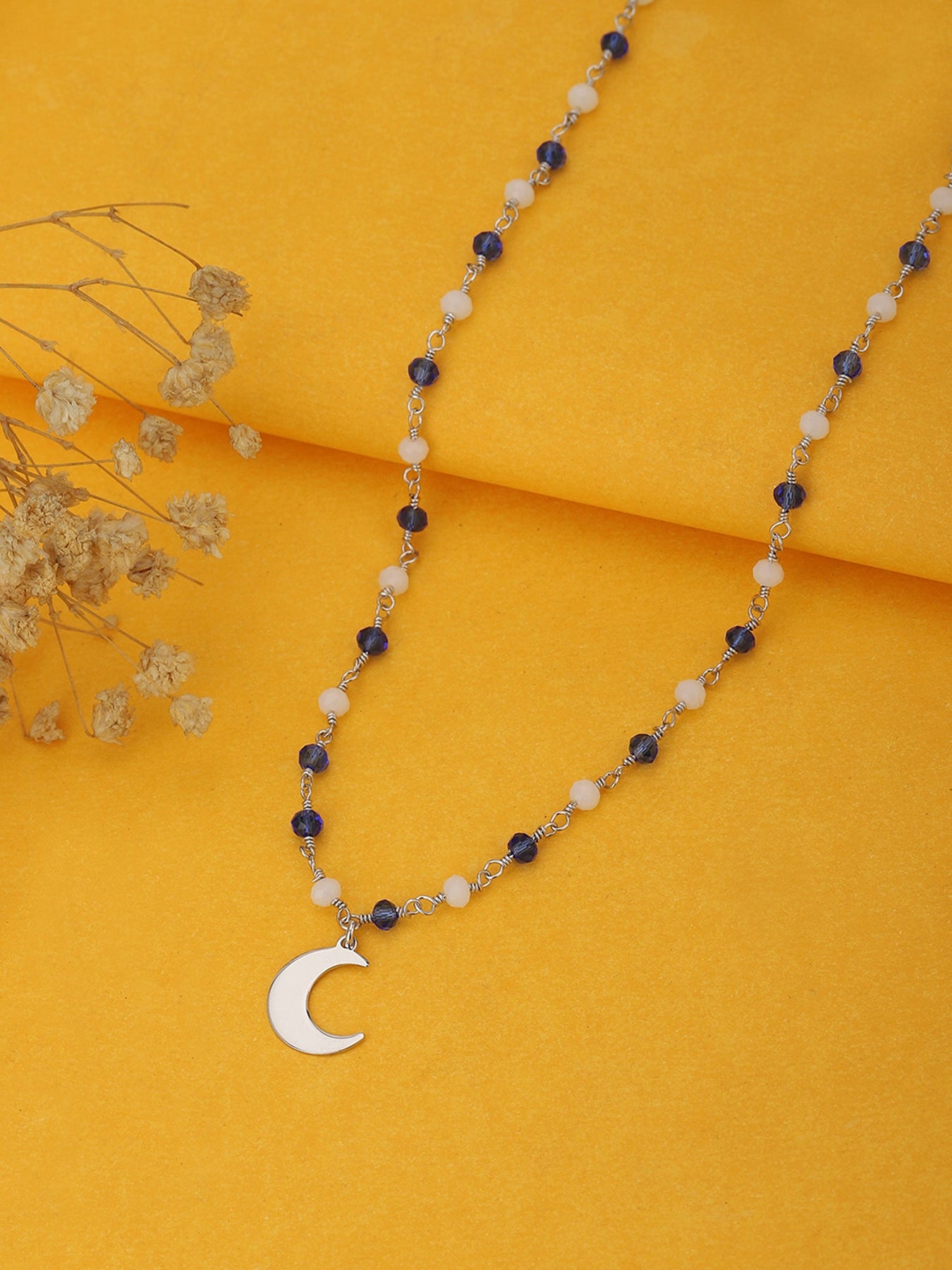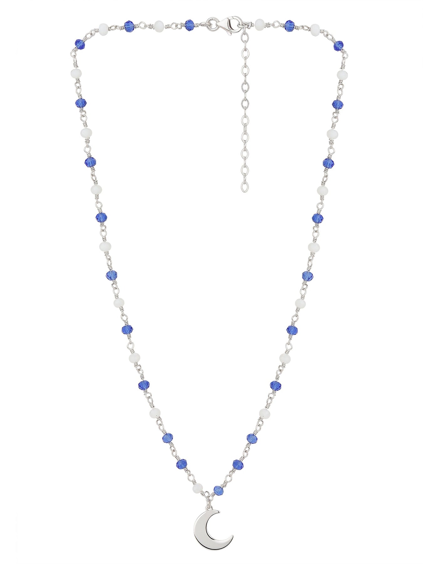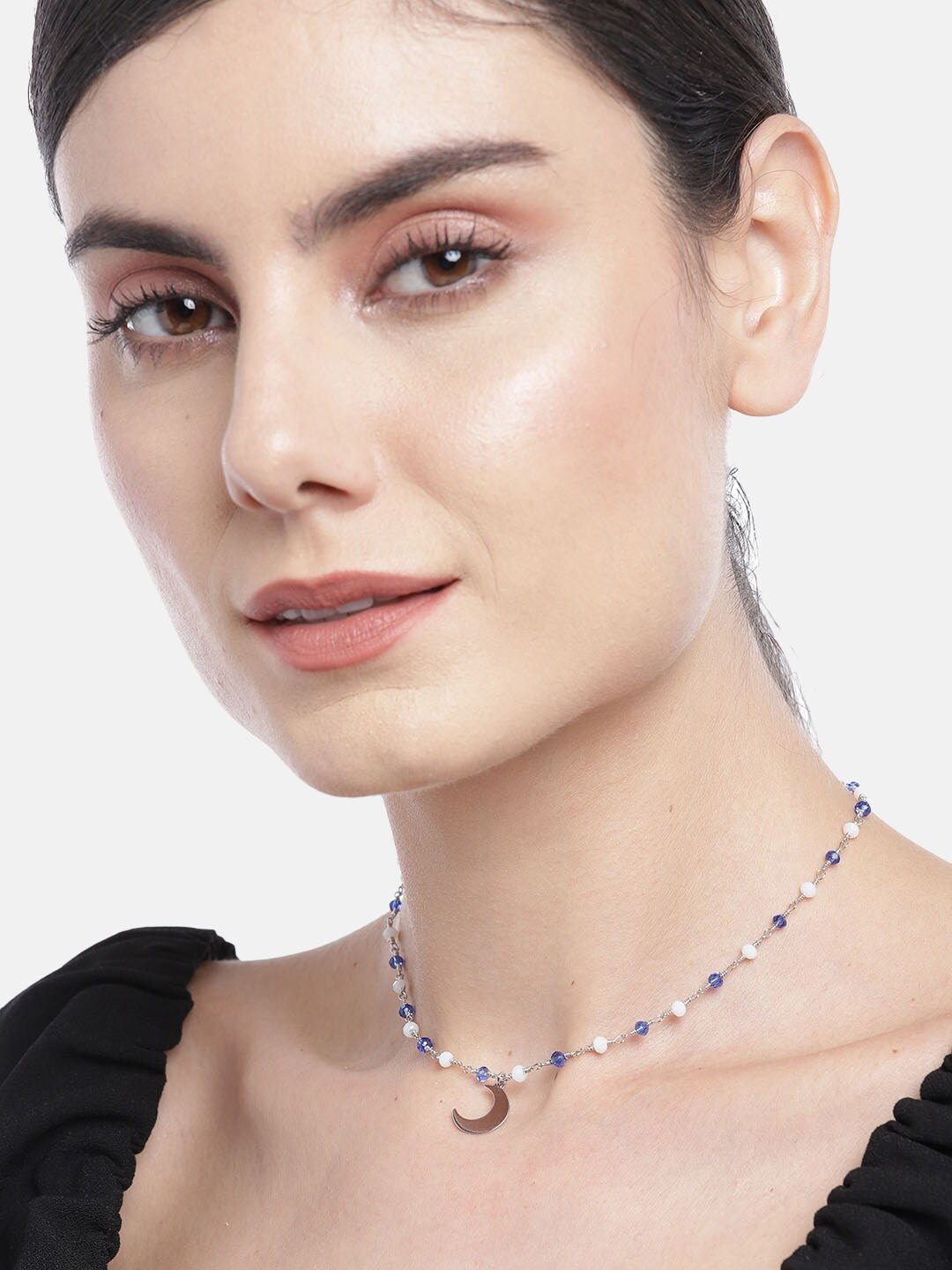 Carlton London Silver-Toned Rhodium-Plated White Blue Brass Beaded Necklace