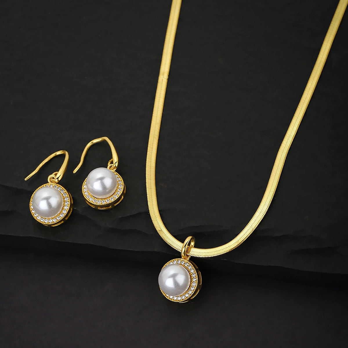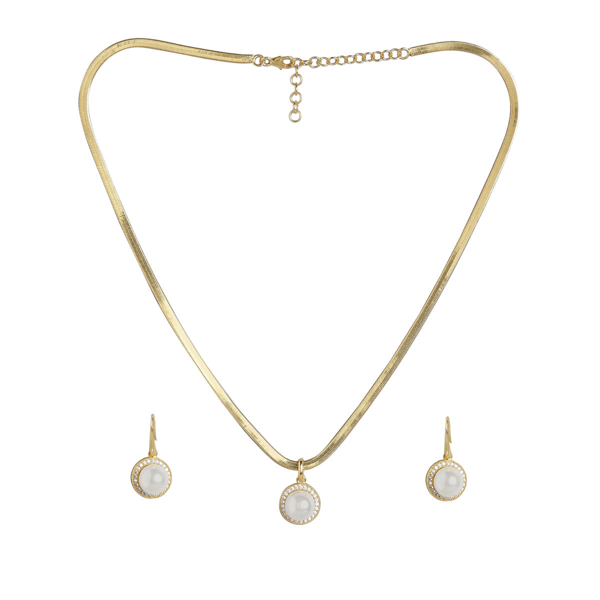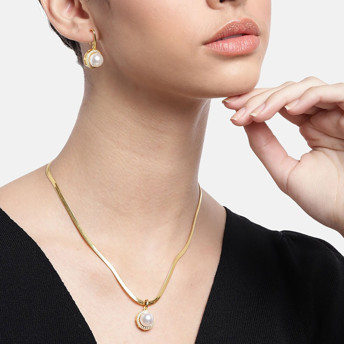 Carlton London Gold Plated White Pearls Necklace & Earrings Jewellery Set For Women