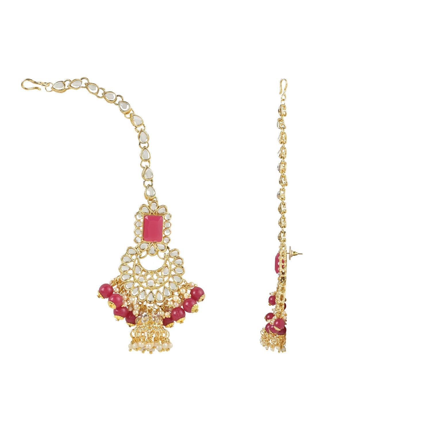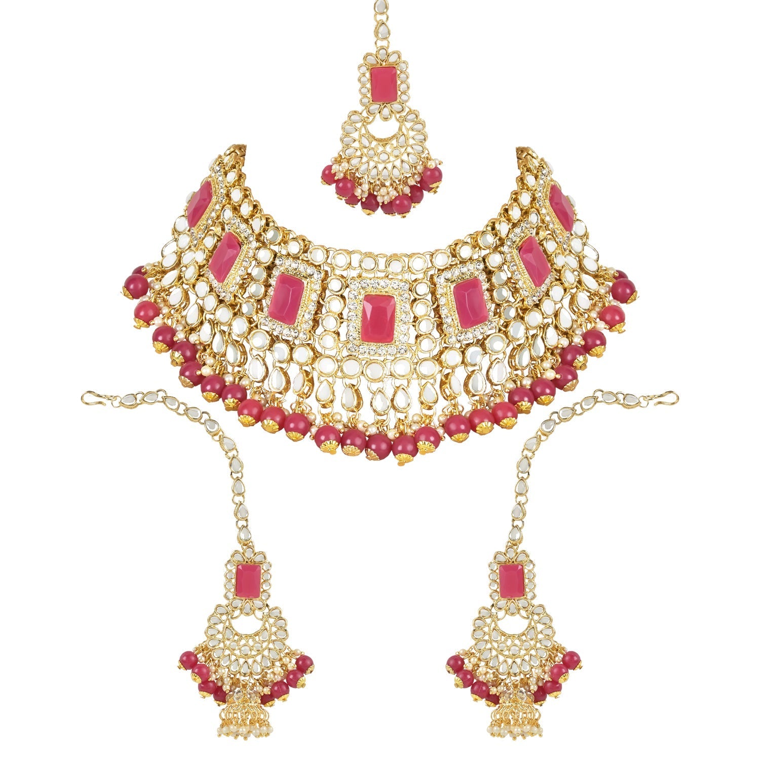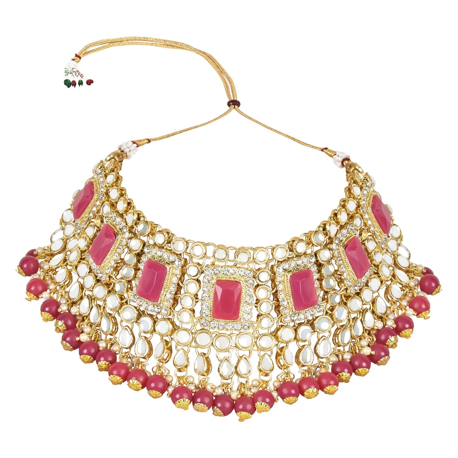 This Jewellery Set Is Crafted In Gold Plating And Consists Of A Necklace, Maang Tikka And A Pair Of Earrings. The Bridal Choker Necklace Feature Kundan-Studded In It And Is Secured With A Drawstring Closures. Style This Necklace Set With A Saree Or Lehenga On Your Wedding Day To Enhance The Look. This Stunning Traditional Handcrafted Bridal Choker Necklace Set By I Jewels Is The Perfect Accessory For Your Special Day. Plated In 18K Gold, The Set Features Intricate Faux Kundan And Pearl Work That Adds A Touch Of Elegance And Sophistication. The Set Includes A Beautiful Choker Necklace, Matching Earrings, And A Maang Tikka That Are All Designed To Make You Feel Like Royalty. The Attention To Detail And Expert Craftsmanship Make This Set A True Work Of Art, And The High-Quality Materials Ensure That It Will Last For Years To Come. Whether You'Re A Bride-To-Be Or Simply Looking To Add Some Glamour To Your Wardrobe, This Necklace Set Is Sure To Turn Heads. Give Yourself Or A Loved One The Gift Of Timeless Beauty With This Exquisite Jewelry Set.