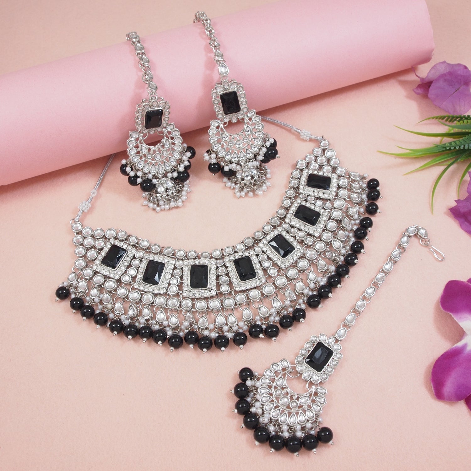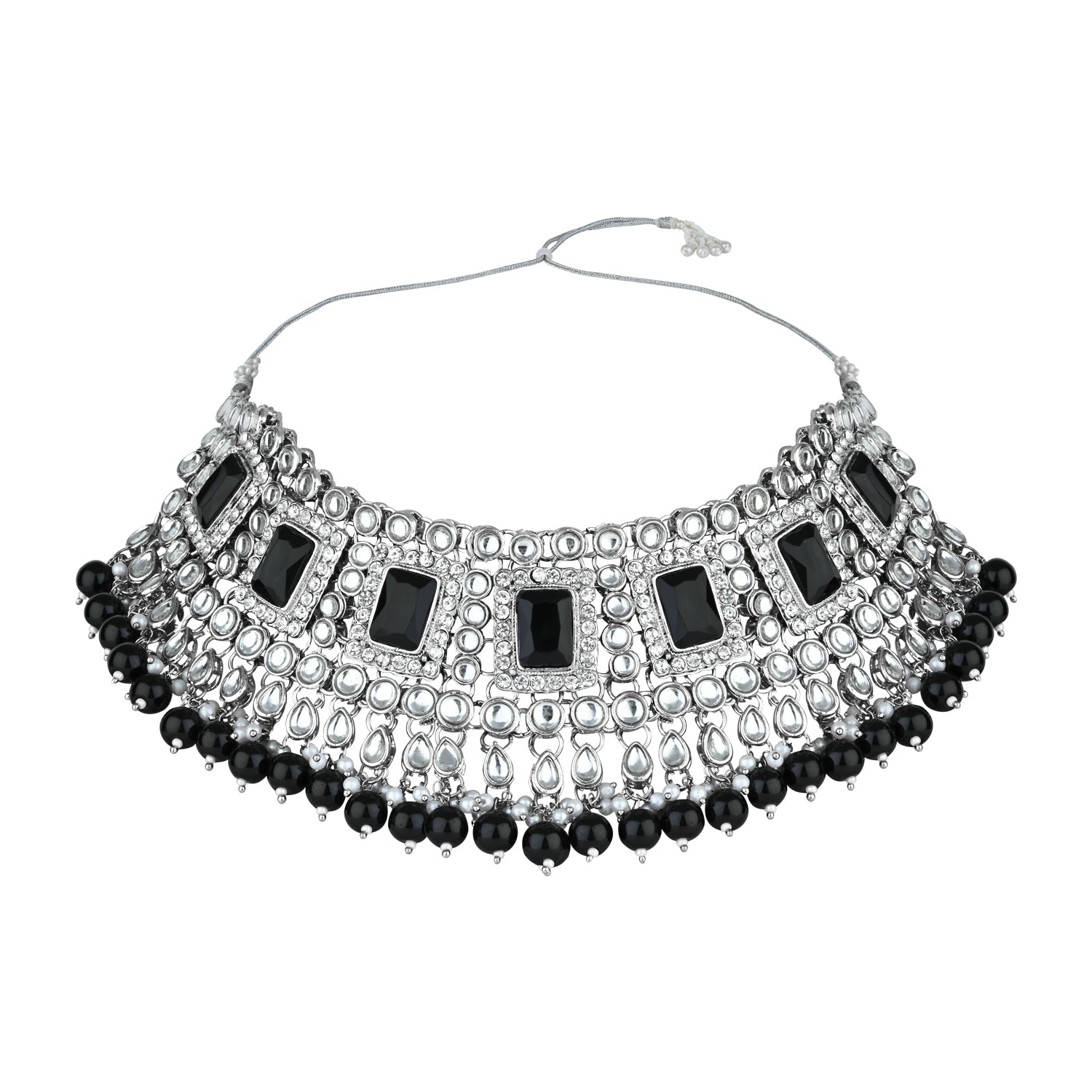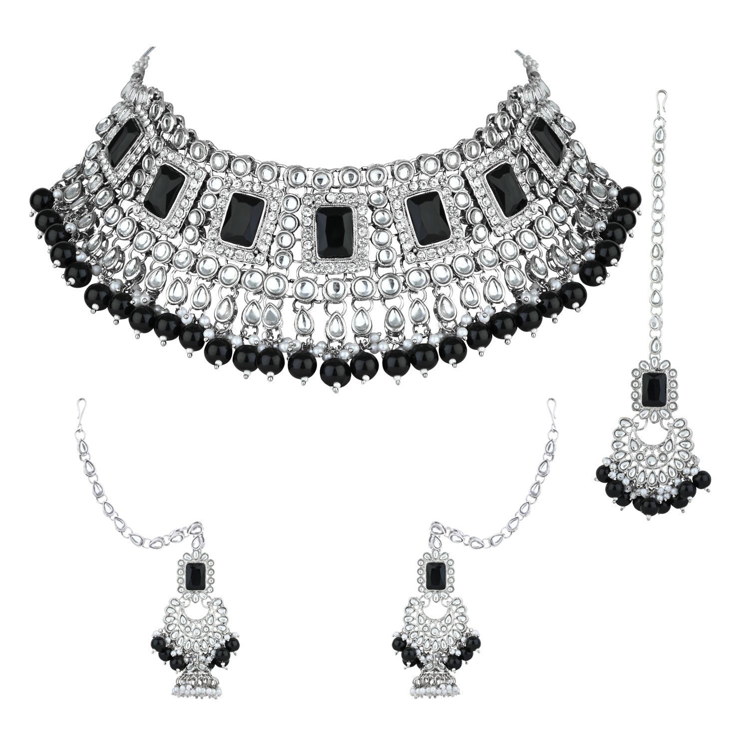 The Bridal Choker Necklace Feature Kundan- In It And Is Secured With A Drawstring Closures. Style This Necklace Set With A Saree Or Lehenga On Your Wedding Day To Enhance The Look. This Stunning Traditional Handcrafted Bridal Choker Necklace Set By I Jewels Is The Perfect Accessory For Your Special Day. Plated In Silver, The Set Features Intricate Faux Kundan And Pearl Work That Adds A Touch Of Elegance And Sophistication. The Set Includes A Beautiful Choker Necklace, Matching Earrings, And A Maang Tikka That Are All Designed To Make You Feel Like Royalty. The Attention To Detail And Expert Craftsmanship Make This Set A True Work Of Art, And The High-Quality Materials Ensure That It Will Last For Years To Come. Whether You'Re A Bride-To-Be Or Simply Looking To Add Some Glamour To Your Wardrobe, This Necklace Set Is Sure To Turn Heads. Give Yourself Or A Loved One The Gift Of Timeless Beauty With This Exquisite Jewelry Set.