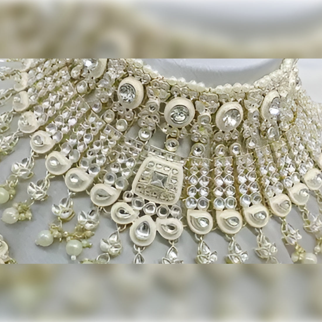 • Luxurious Ivory-Toned Kundan Choker With Premium Glass-Cut Polki Stones That Mimic Uncut Diamonds