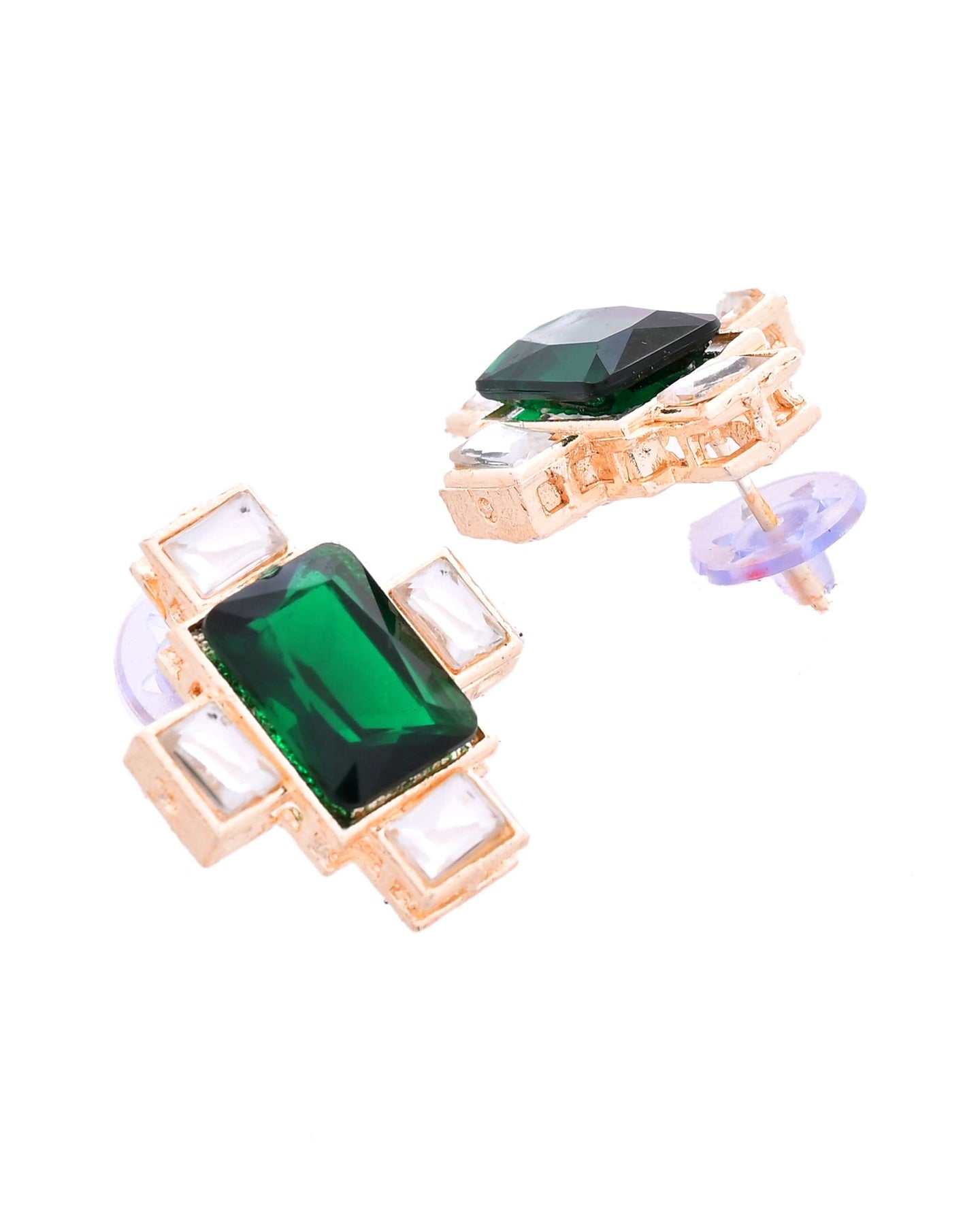 This Beautifully Crafted Piece Brings Together Classic Pearls And Regal Green Stones In A Graceful, Traditional Design. The Necklace Features A Dual-Strand Of Lustrous Faux Pearls, Meeting At A Bold Central Pendant Adorned With Rectangular And Teardrop-Shaped Green Stones Framed In A Gold-Tone Setting. Accented With Brilliant White Stones In A Kundan-Inspired Style, It Adds A Festive Charm And Ethnic Elegance To Any Attire. The Necklace Is Tied With A Dori (Thread) For Adjustable Length, Ensuring Both Comfort And Style For All-Day Wear. Perfect For Ethnic Celebrations, Wedding Functions, Or Even As A Standout Accessory For A Fusion Outfit, This Piece Blends Sophistication With Timeless Tradition.