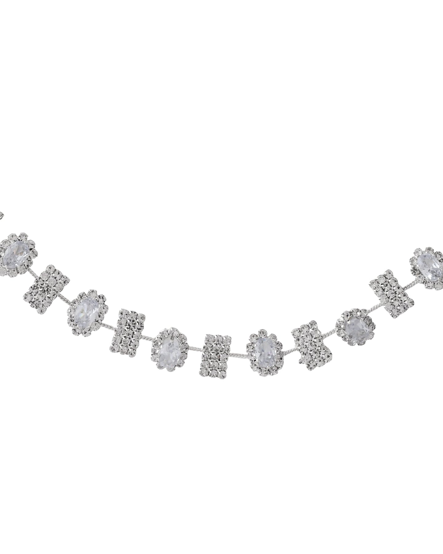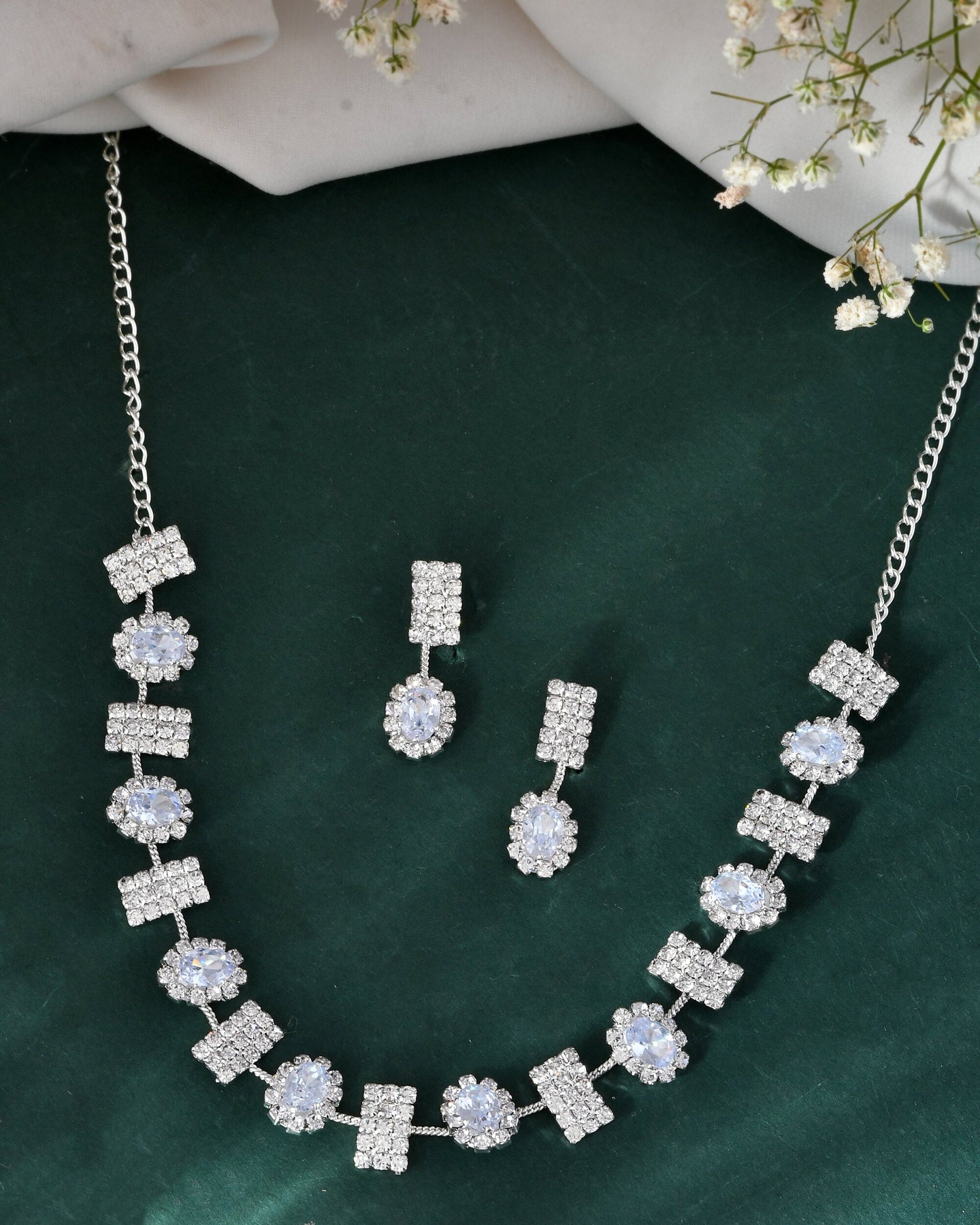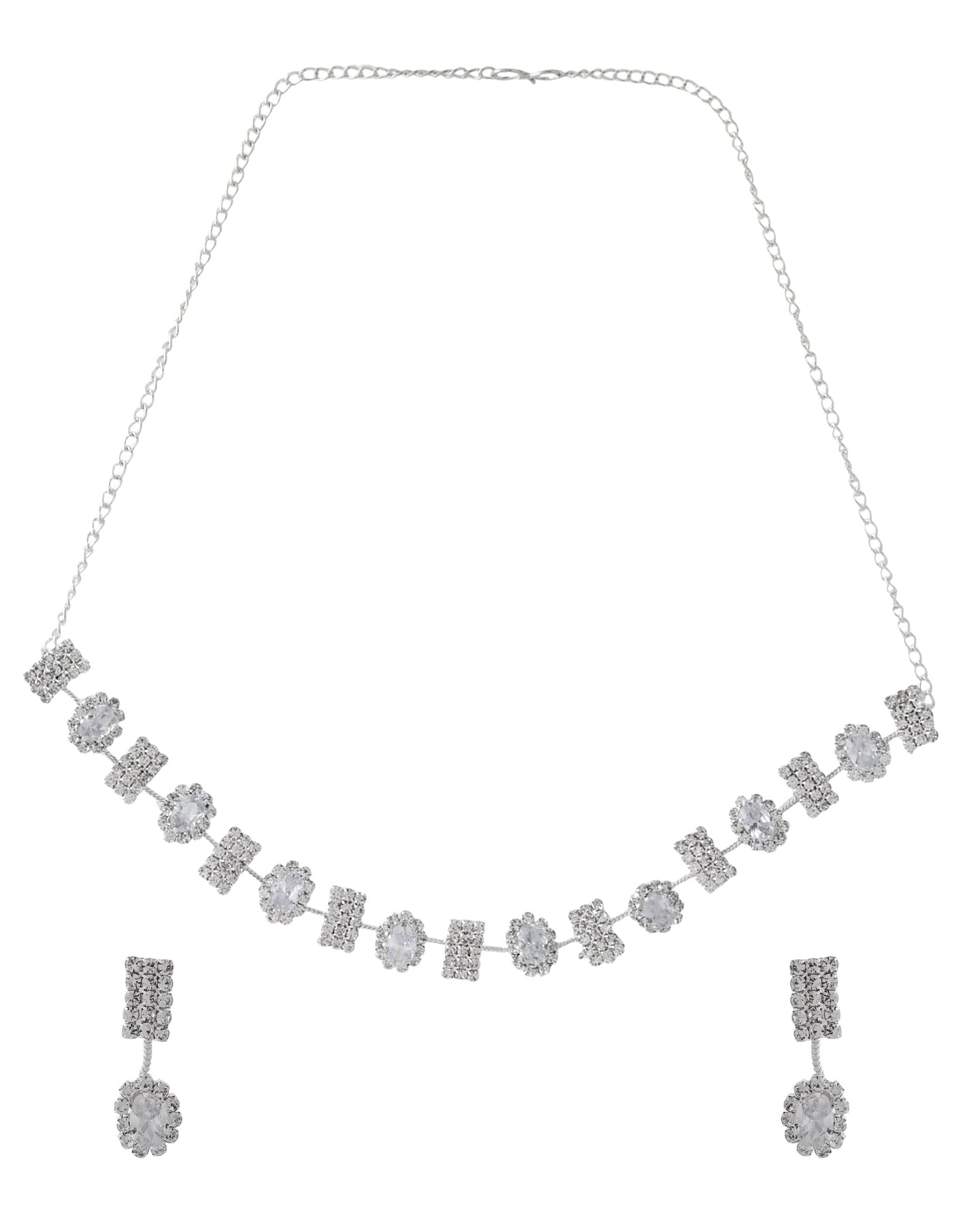 Add A Touch Of Timeless Glamour To Your Look With This Stunning Silver Crystal Necklace Set. Designed With Alternating Shimmering Round And Baguette-Cut Stones, This Piece Is Perfect For Making A Sophisticated Statement. The Matching Earrings Complete The Look, Making It An Ideal Choice For Parties, Weddings, And Festive Occasions.