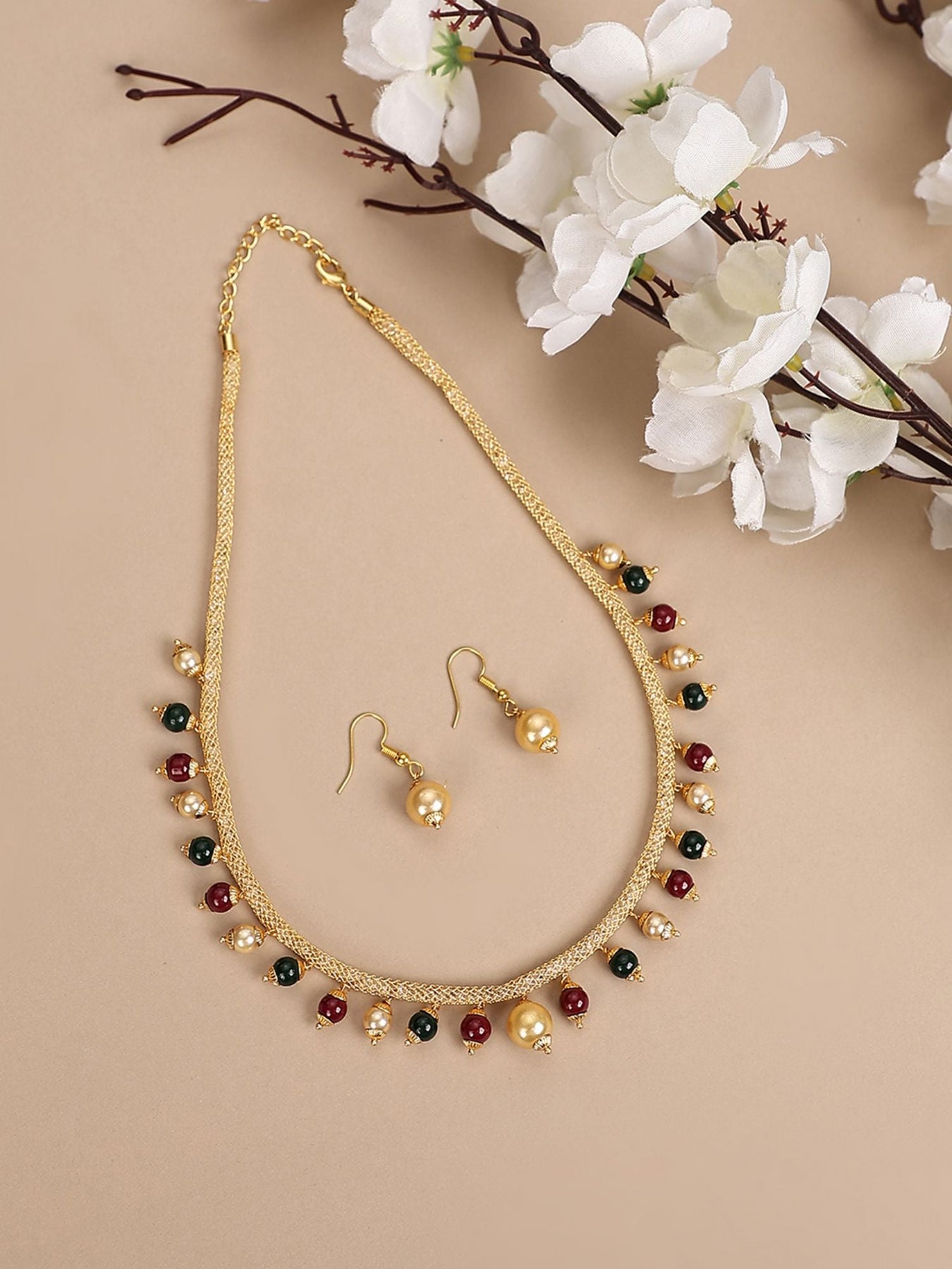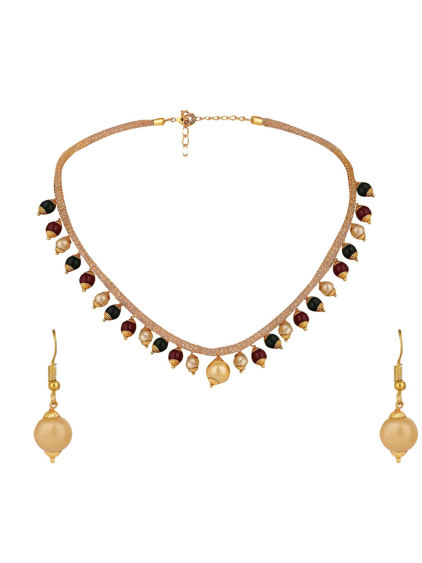 Elegant Pearl And Ad Stone Sleek Multicolour Jewellery Set, Secured With Hook Closure, Fits On All Attire