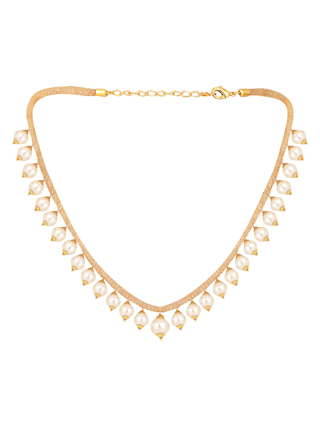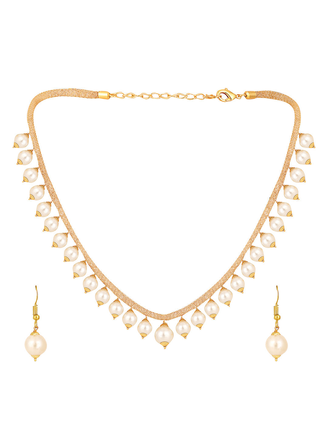 Elegant Pearl And Ad Stone Sleek Off White Jewellery Set, Secured With Lobster Claw Closure, Fits On All Attire