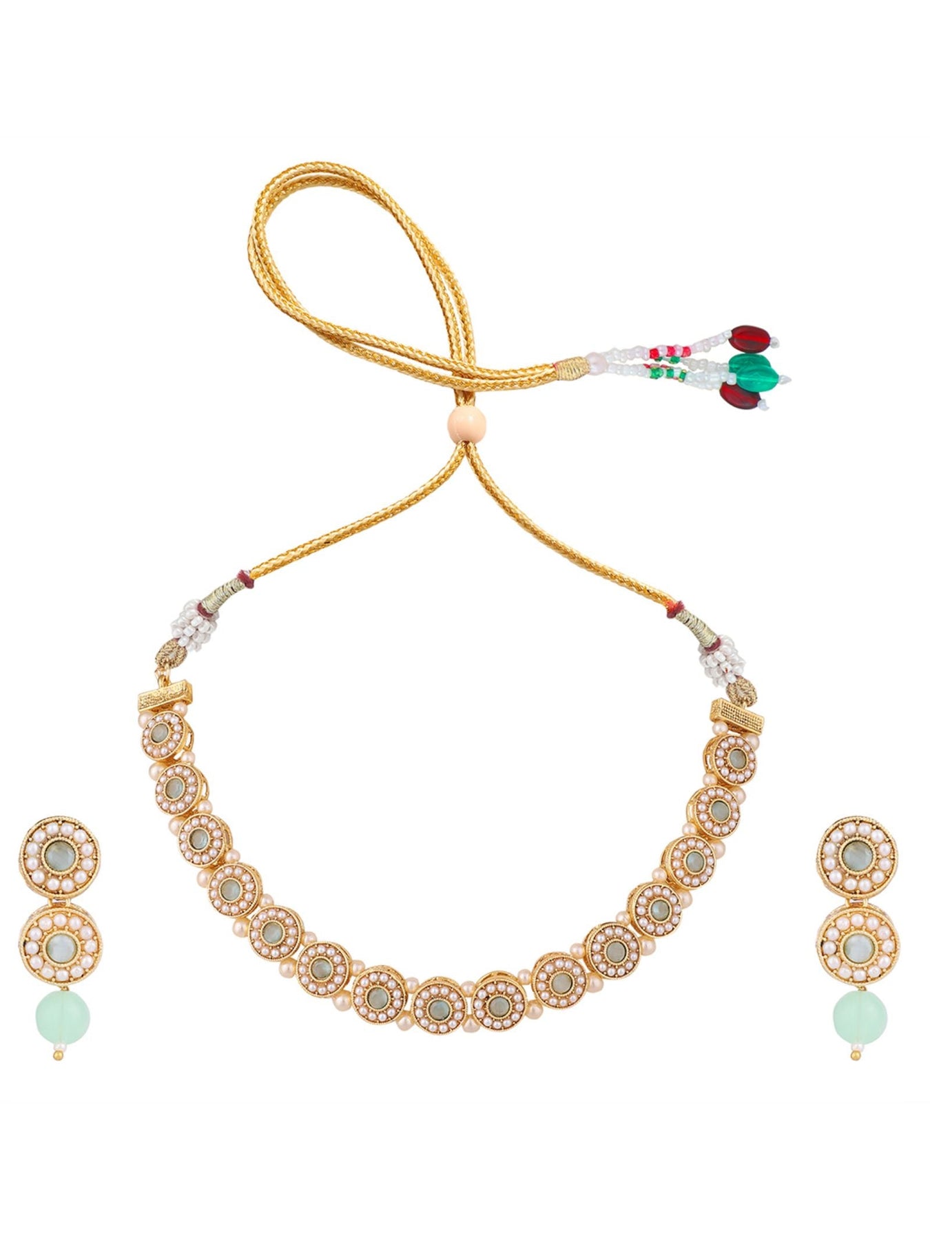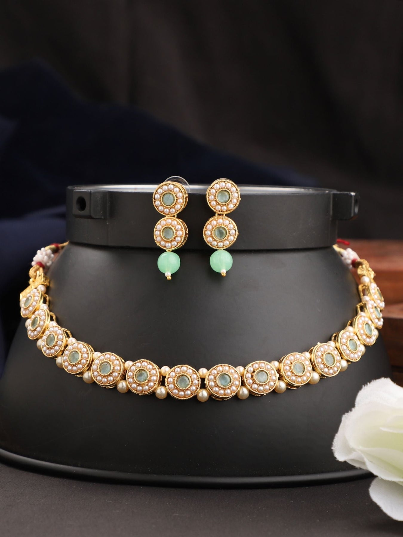 Traditional Gold Plated Kundan Sea Green Choker With Earring Set