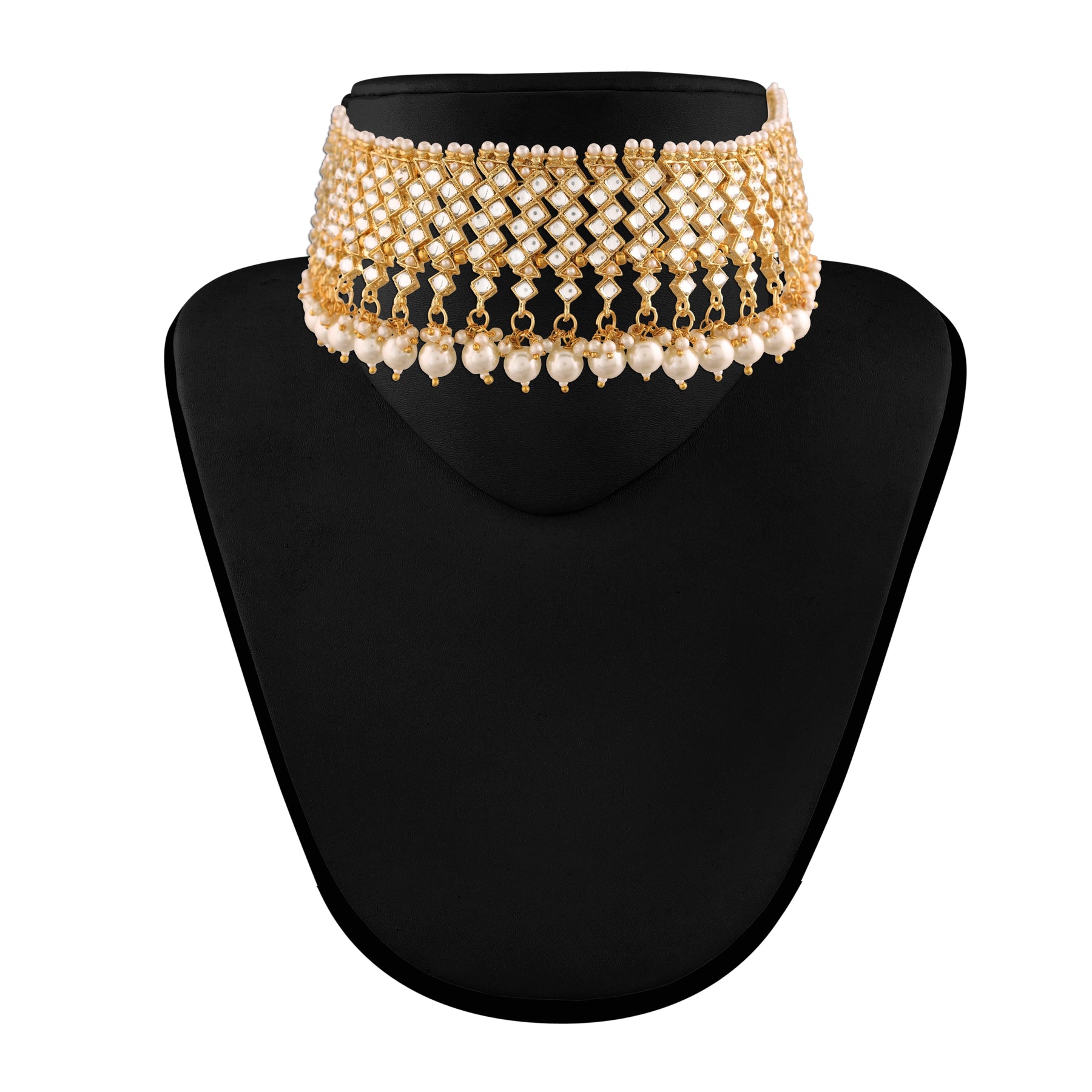 This Jewellery Set Is Crafted In 18K Gold Plating And Consists Of A Necklace And A Pair Of Earrings. The Necklace Feature Kundan & Pearls-Studded In It And Is Secured With A Drawstring Closures. Style This Necklace Set With A Saree Or A Salwar Suit To Enhance The Look.