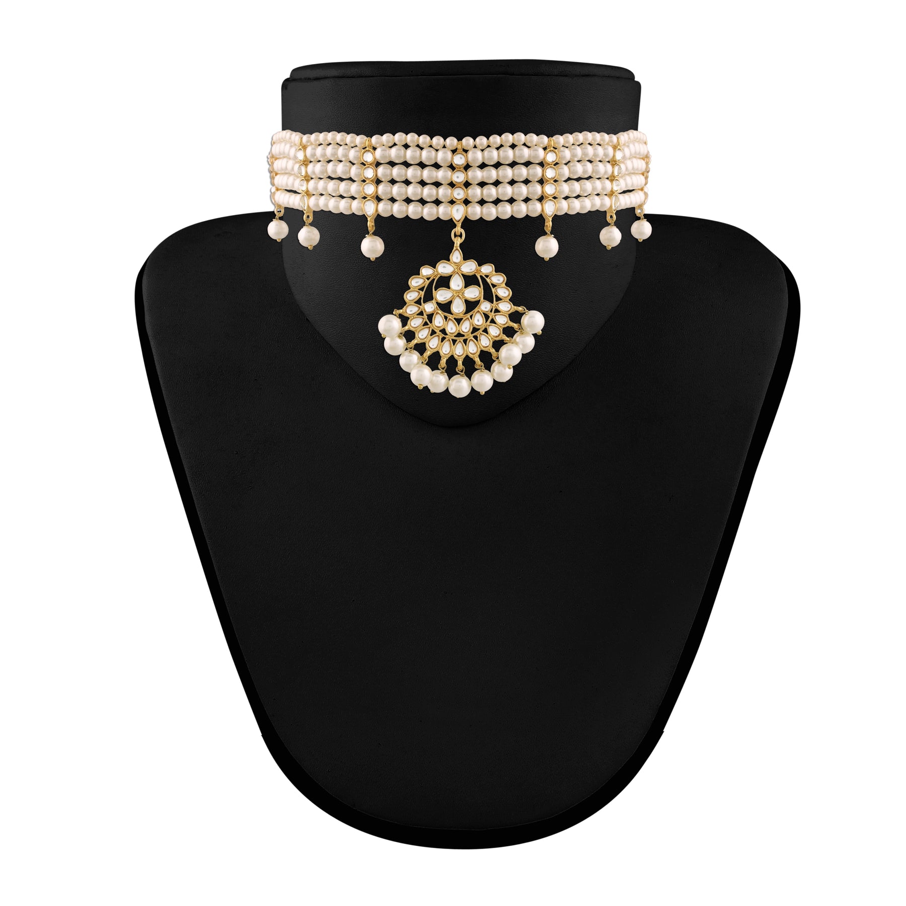 This Jewellery Set Is Crafted In 18K Gold Plating And Consists Of A Necklace, Maang Tikka And A Pair Of Earrings. The Necklace Feature Kundan & Pearls-Studded In It And Is Secured With A Drawstring Closures. Style This Necklace Set With A Saree Or A Salwar Suit To Enhance The Look.