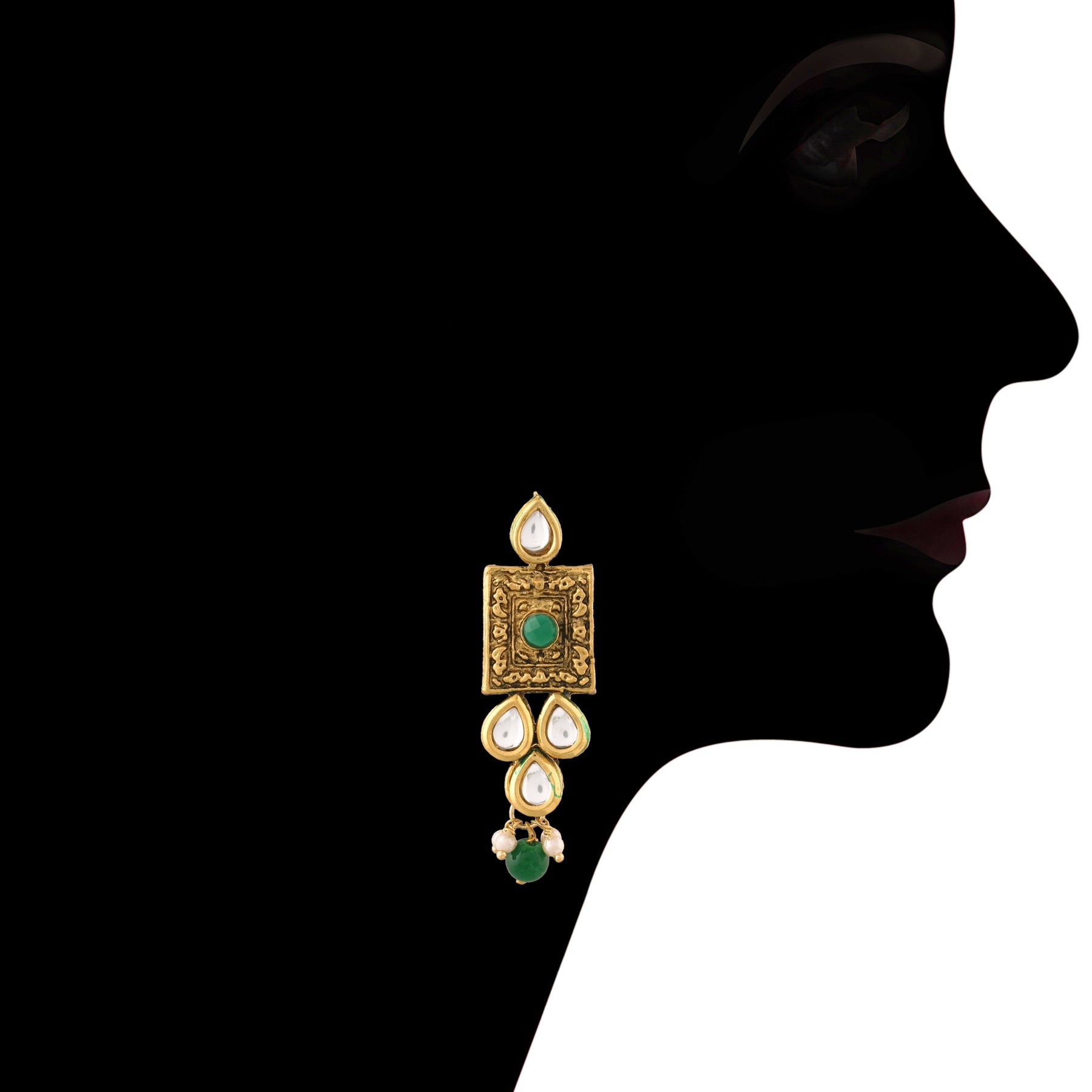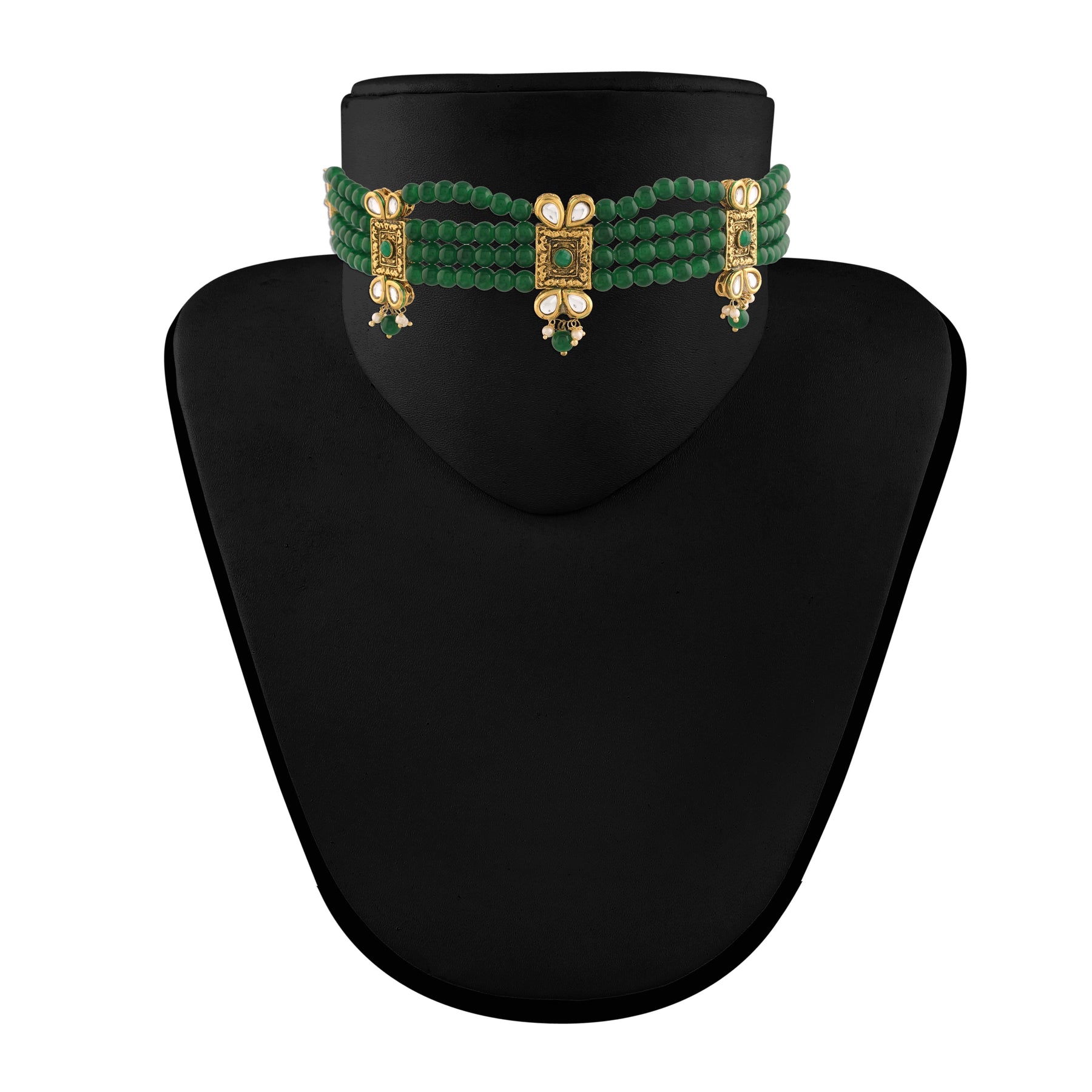This Jewellery Set Is Crafted In 18K Gold Plating And Consists Of A Choker And A Pair Of Earrings. The Choker Necklace Feature Beads & Pearls-Studded In It And Is Secured With A Drawstring Closures. Style This Necklace Set With A Saree Or A Salwar Suit To Enhance The Look.