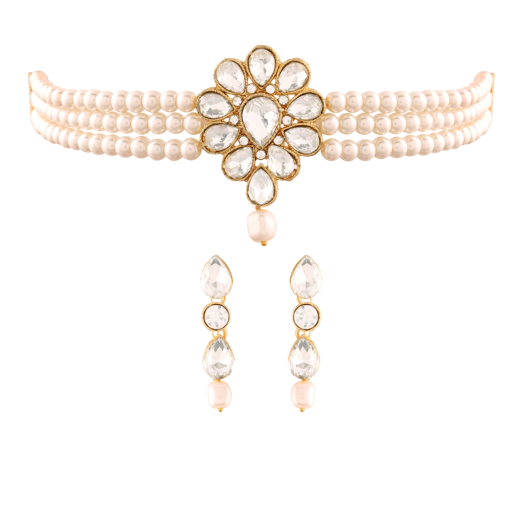 This Jewellery Set Is Crafted In 18K Gold Plating And Consists Of A Choker And A Pair Of Earrings. The Choker Necklace Feature Beads & Pearls-Studded In It And Is Secured With A Drawstring Closures. Style This Necklace Set With A Saree Or A Salwar Suit To Enhance The Look.