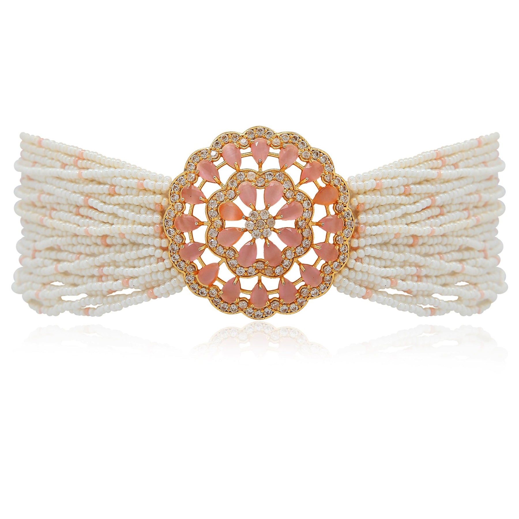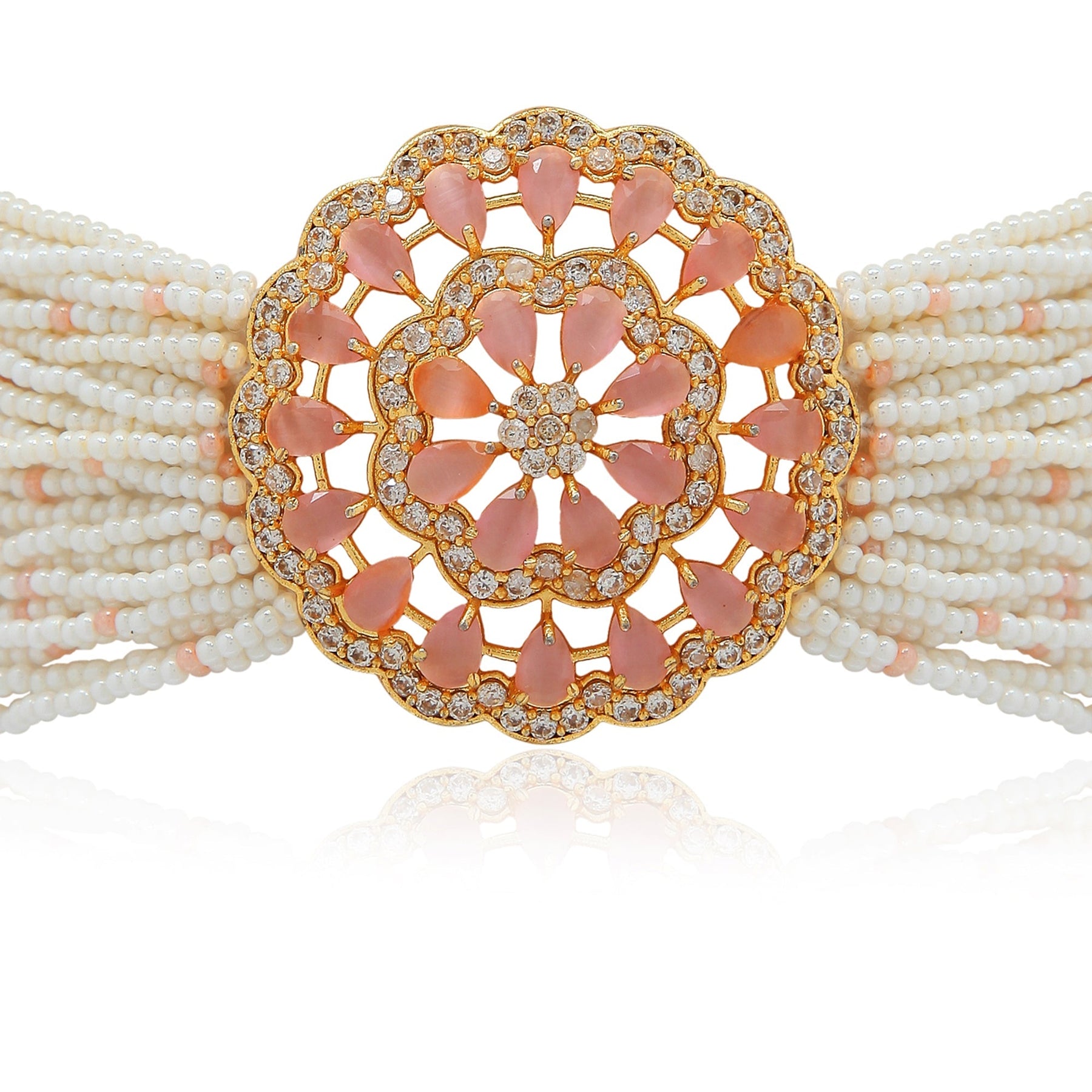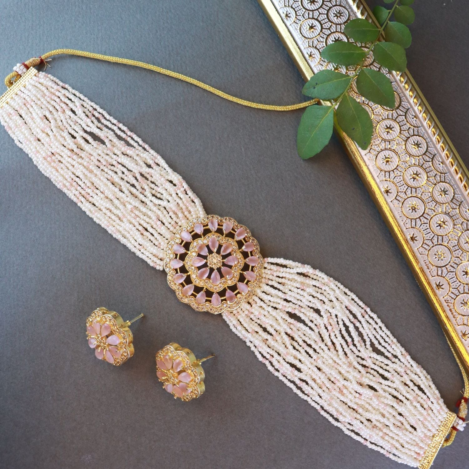 Pearl Studded Choker Necklace Comes Along With Earrings. This Captivating Set Is A Great Gifting Option And Is A Perfect Pick To Add To Your Jewelry Collection. You Can Style It With Ethnic Or Western Clothing.