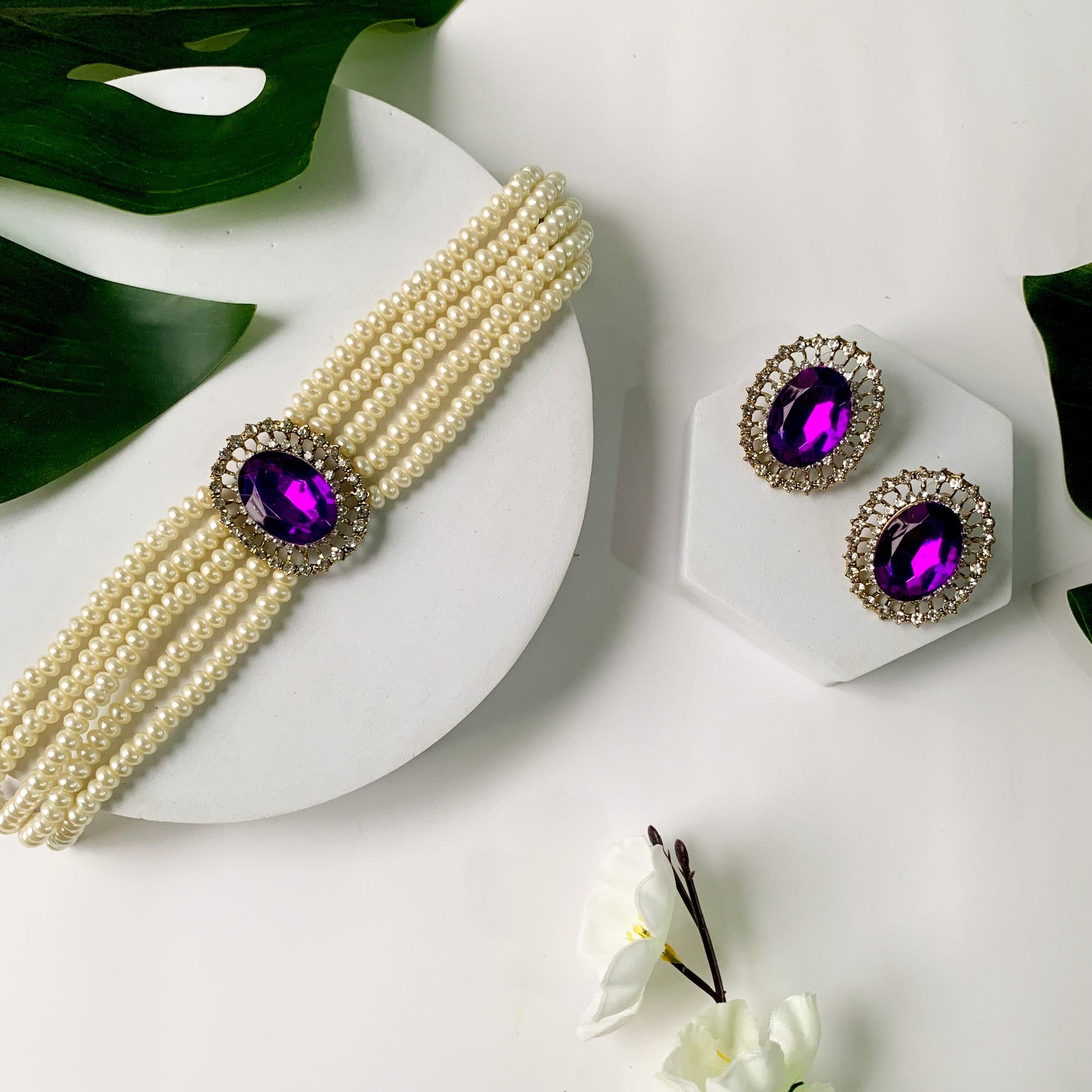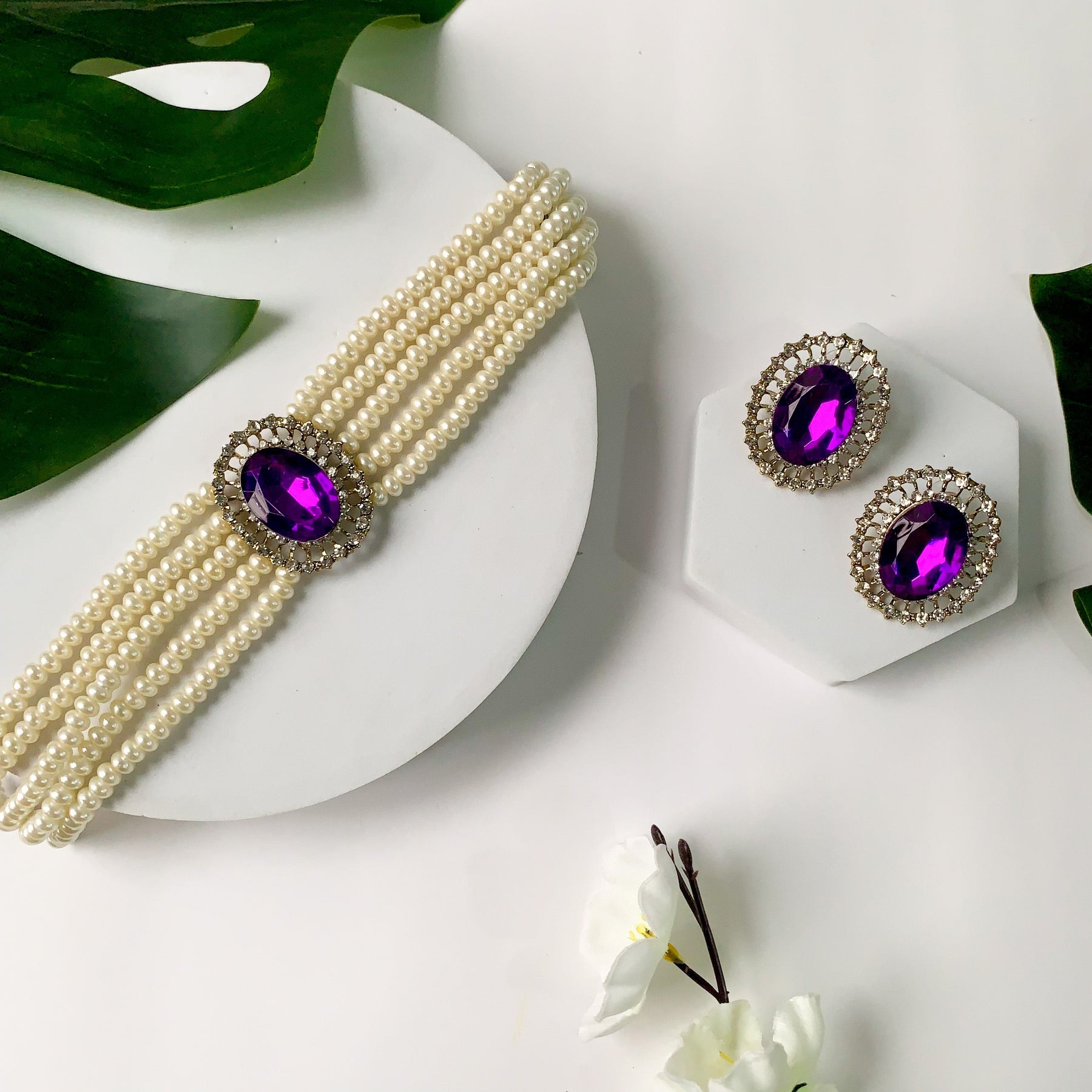 Introducing The Gold Plated Traditional Green Stone Studded Pearl Choker Necklace Jewellery Set, A Captivating Ensemble That Beautifully Combines The Charm Of Gold Plating, Vibrant Green Stones, And Lustrous Pearls. This Exquisite Jewelry Set Is Designed To Enhance The Elegance And Grace Of Women And Girls, Making It A Perfect Accessory For Special Occasions And Celebrations.At The Heart Of This Set Is The Stunning Choker Necklace, Which Sits Gracefully Along The Collarbone, Accentuating The Neckline With Its Enchanting Design. The Necklace Features Intricate Craftsmanship, With Delicate Gold-Plated Links That Hold Together An Array Of Lustrous Pearls. These Pearls, Known For Their Timeless Beauty And Sophistication, Exude A Radiant Glow That Adds A Touch Of Elegance To Any Attire.The Adjustable Length Of The Choker Necklace Ensures A Comfortable Fit, Allowing You To Wear It With Ease And Confidence. The Secure Clasp Ensures That The Necklace Stays In Place, Allowing You To Enjoy Your Special Moments Without Any Worries.Crafted With Meticulous Attention To Detail, This Jewelry Set Is Made With High-Quality Materials To Ensure Durability And Longevity. The Gold Plating Gives It A Luxurious And Authentic Appearance, While The Combination Of Pearls And Green Stones Creates A Captivating And Memorable Aesthe