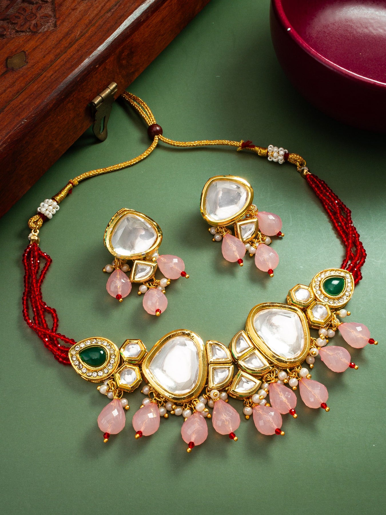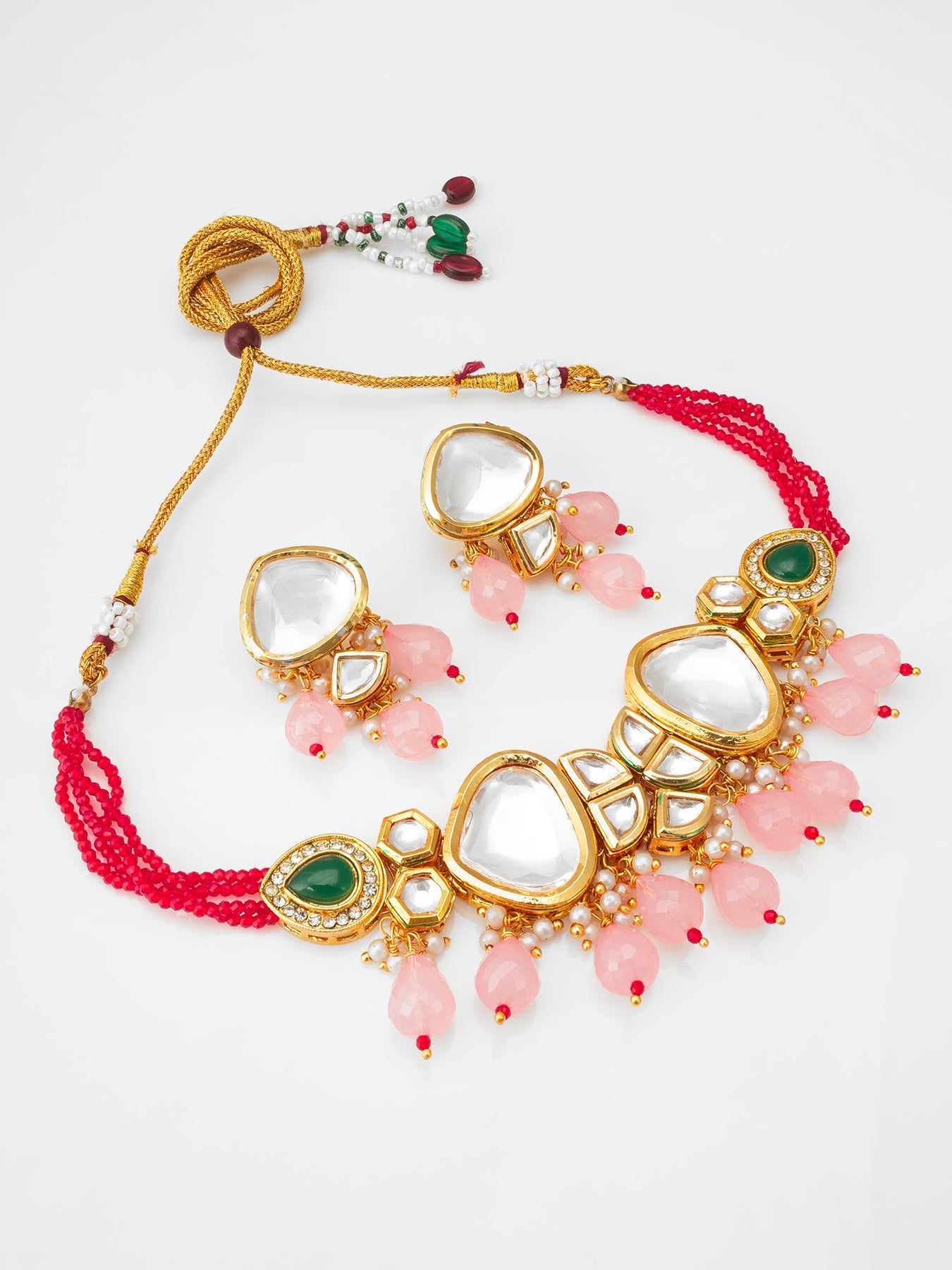 This Elegant Pink And Gold Necklace And Earrings Set Is The Perfect Accessory To Add A Touch Of Sophistication To Any Outfit. The Delicate Design And Color Combination Make It Versatile For Both Casual And Formal Occasions, Making It A Must-Have Addition To Any Jewelry Collection. Made With High-Quality Materials, This Set Is Sure To Make A Statement And Elevate Your Look Effortlessly.