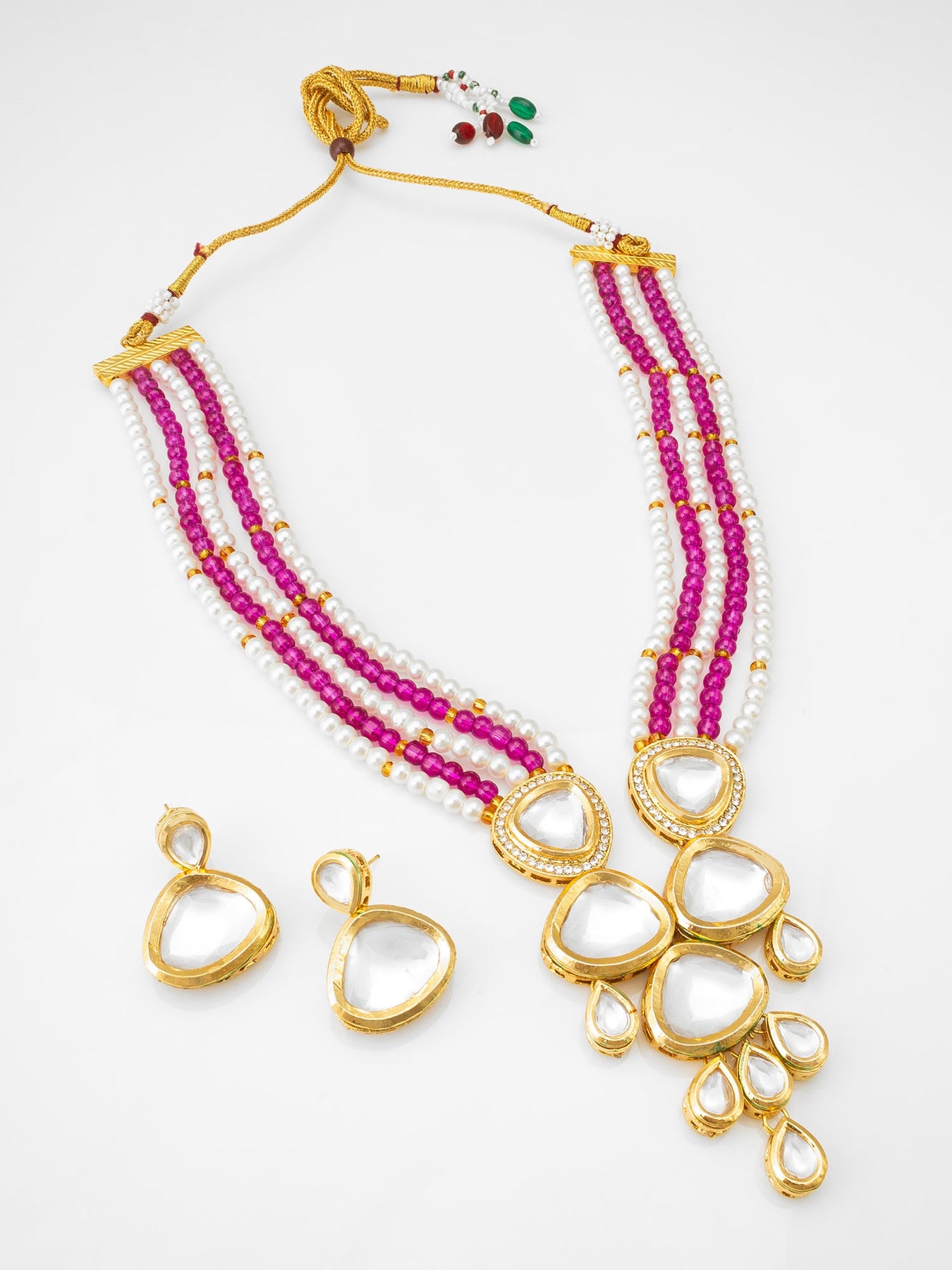 Elevate Your Look With This Stunning Necklace And Earrings Set Featuring Exquisite Pink Kundan Stones. Perfect For Adding A Touch Of Elegance And Sophistication To Any Outfit, This Set Is A Must-Have For Any Jewelry Collection. Ideal For Special Occasions Or Everyday Wear, This Set Will Surely Make You Stand Out From The Crowd.