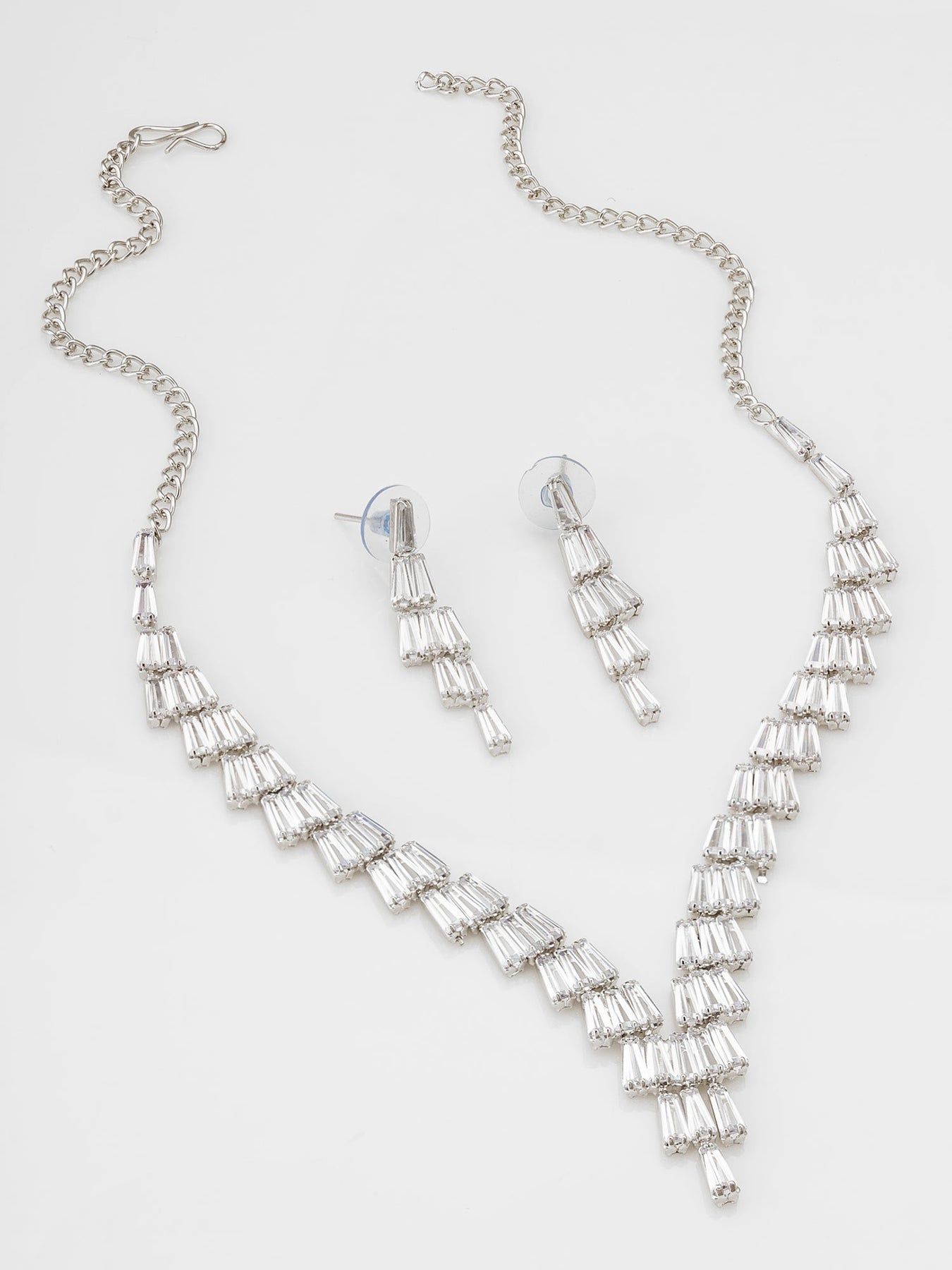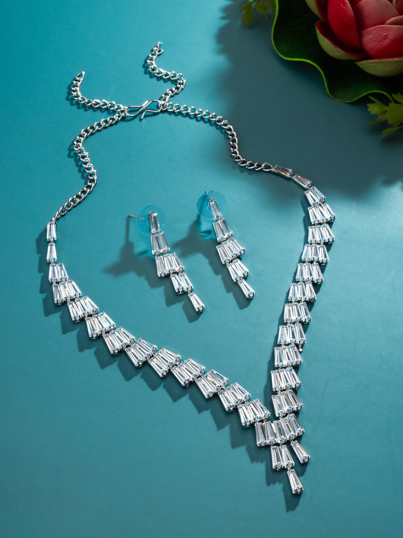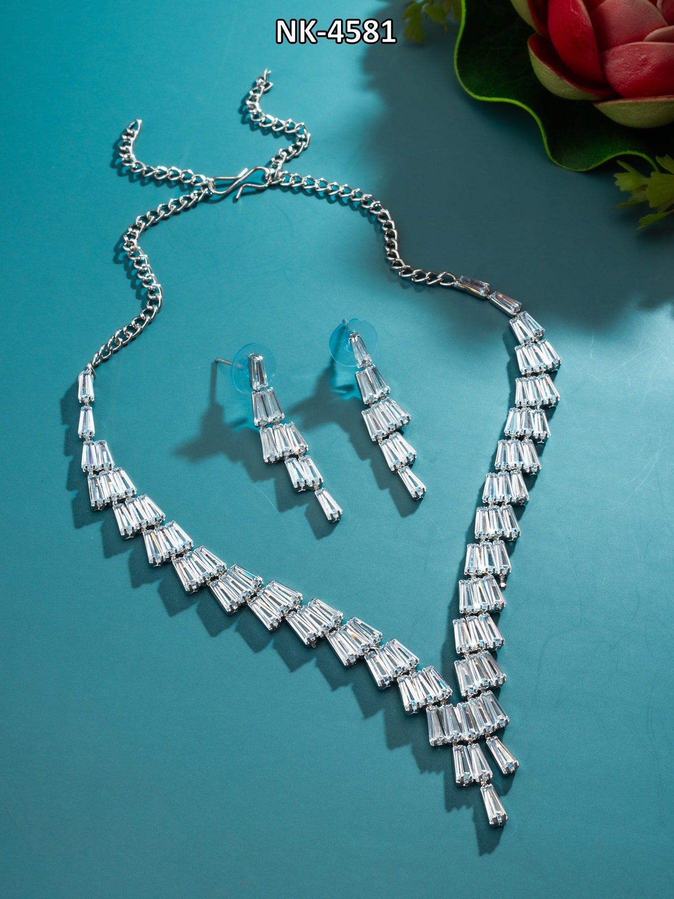 Adorn Yourself With Elegance And Sophistication With This Exquisite Necklace And Earring Set Featuring Delicate Silver Chains. Crafted With Precision And Attention To Detail, This Set Exudes Luxury And Charm, Making It The Perfect Accessory For Any Formal Occasion Or Special Event. Elevate Your Ensemble And Make A Statement With This Stunning Set That Will Surely Turn Heads And Leave A Lasting Impression.