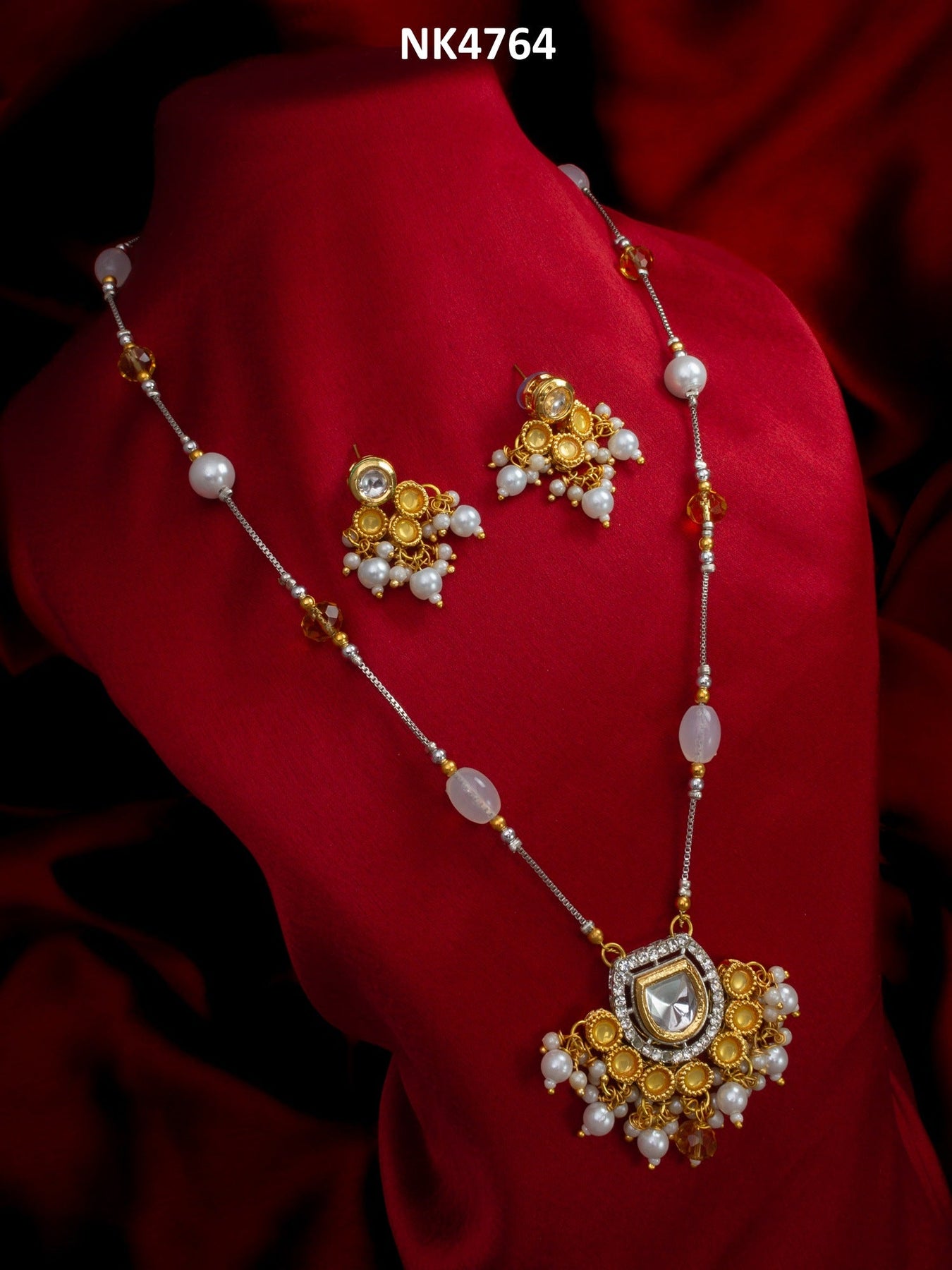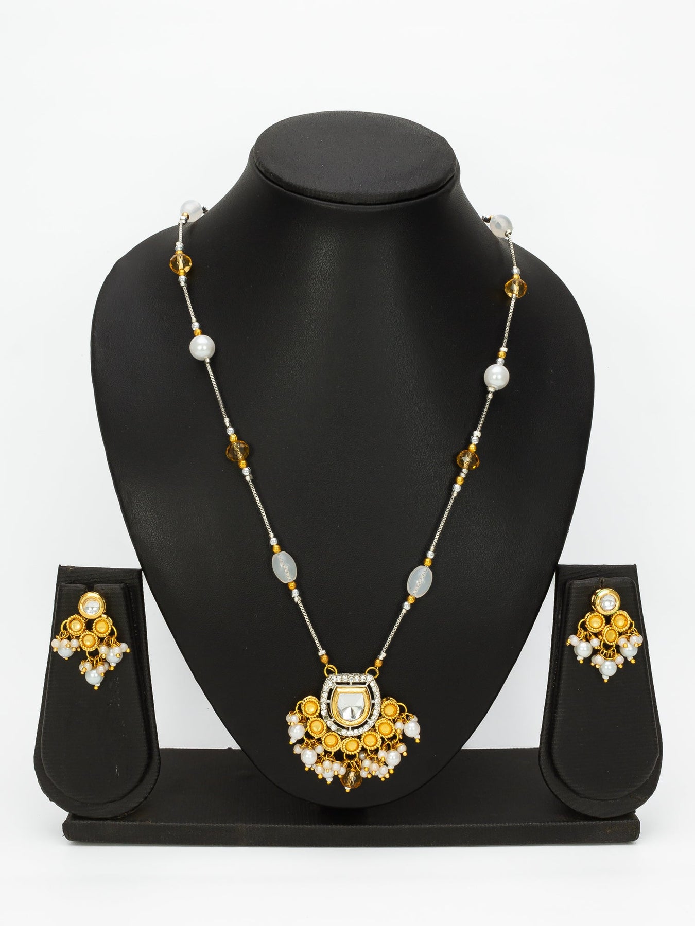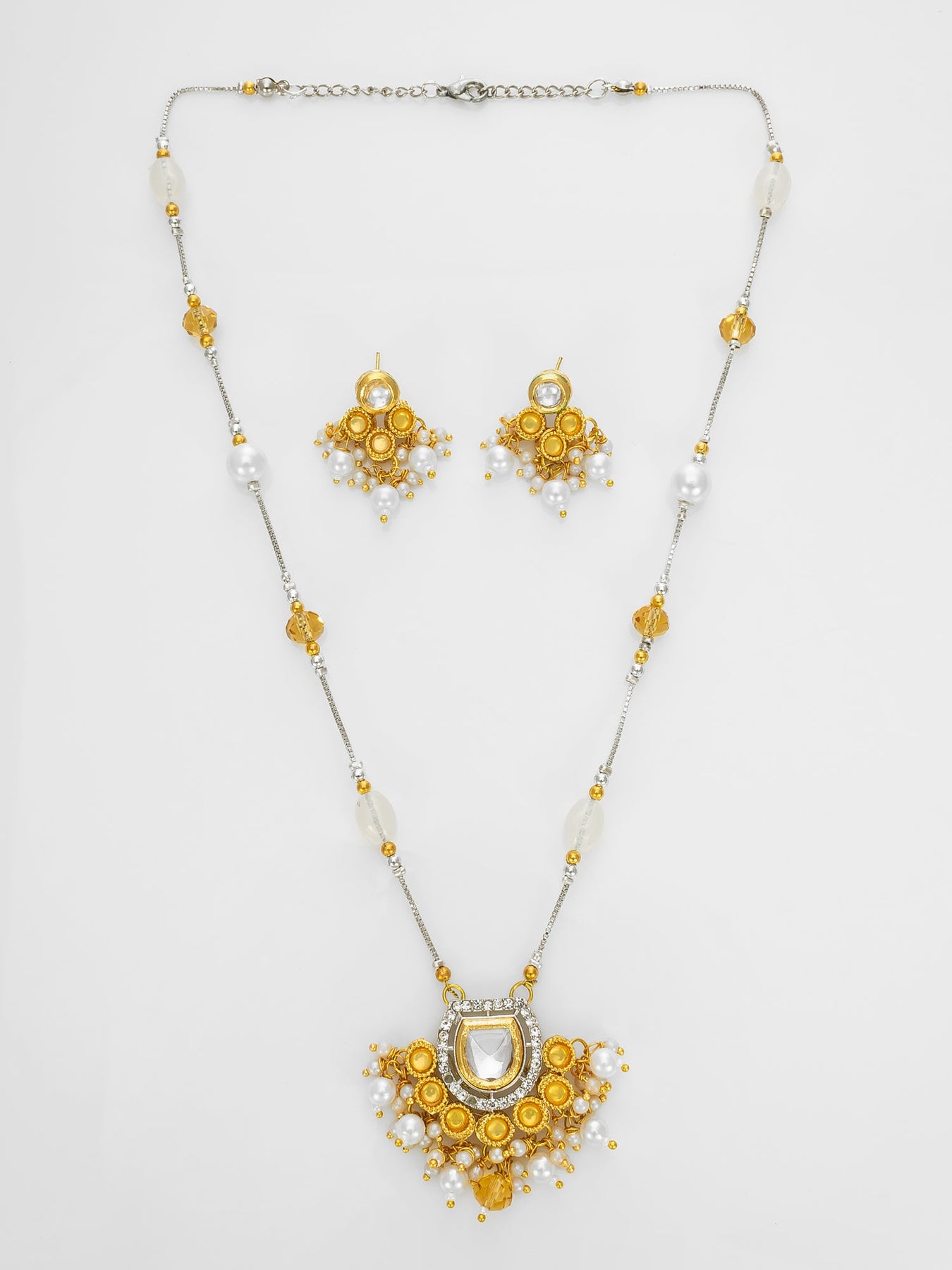 This Exquisite Necklace And Earrings Set Features Lustrous Pearls Elegantly Paired With Radiant Gold Accents, Creating A Timeless Accessory That Enhances Any Outfit. The Delicate Design Of The Necklace Gracefully Drapes Around The Neck, While The Matching Earrings Add A Touch Of Sophistication To Your Look. Perfect For Special Occasions Or Everyday Elegance, This Set Is A Must-Have Addition To Your Jewelry Collection, Offering Versatility And Charm That Will Never Go Out Of Style.
