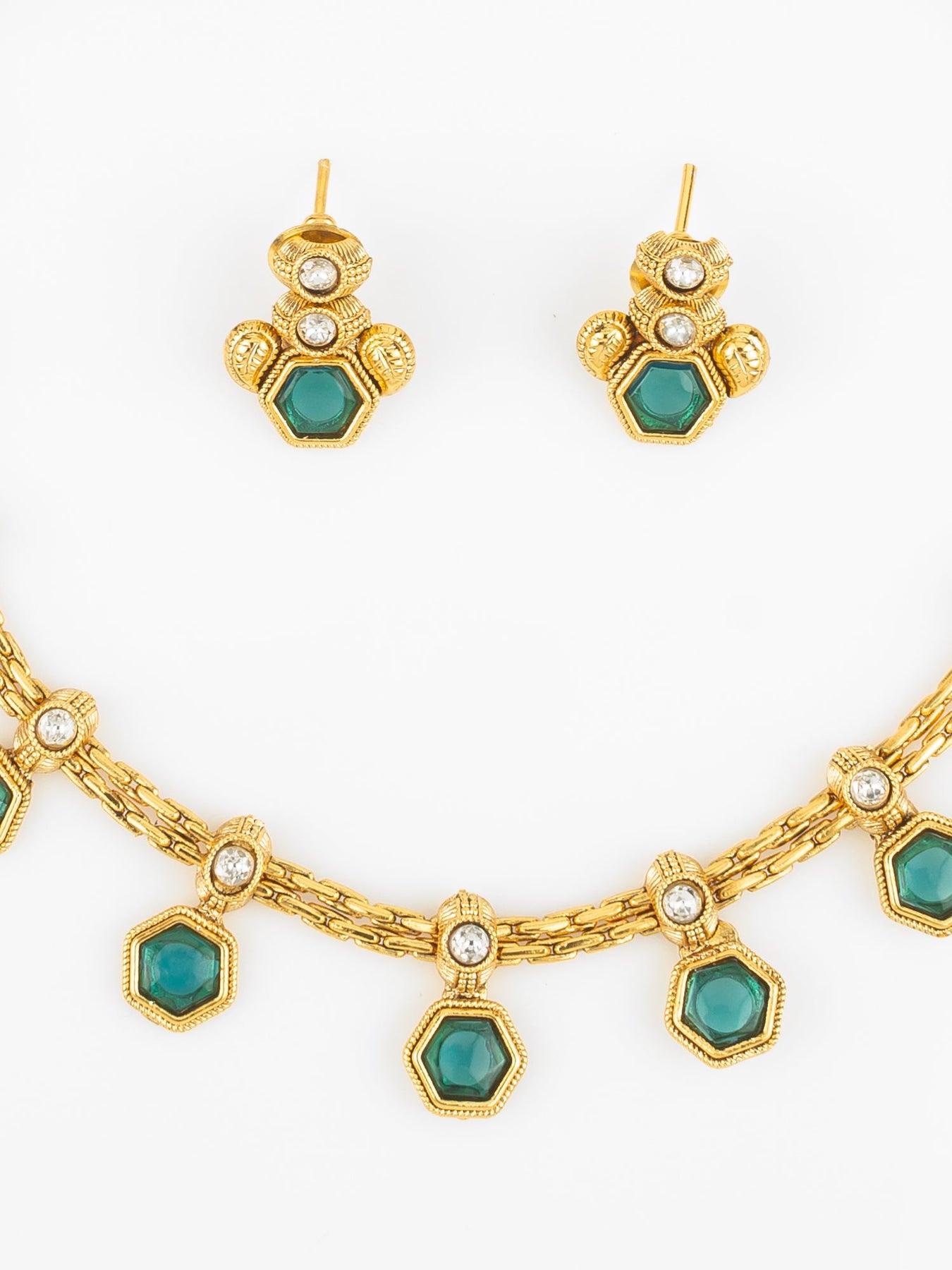 Women's Green Brass Gold Jewellery Set