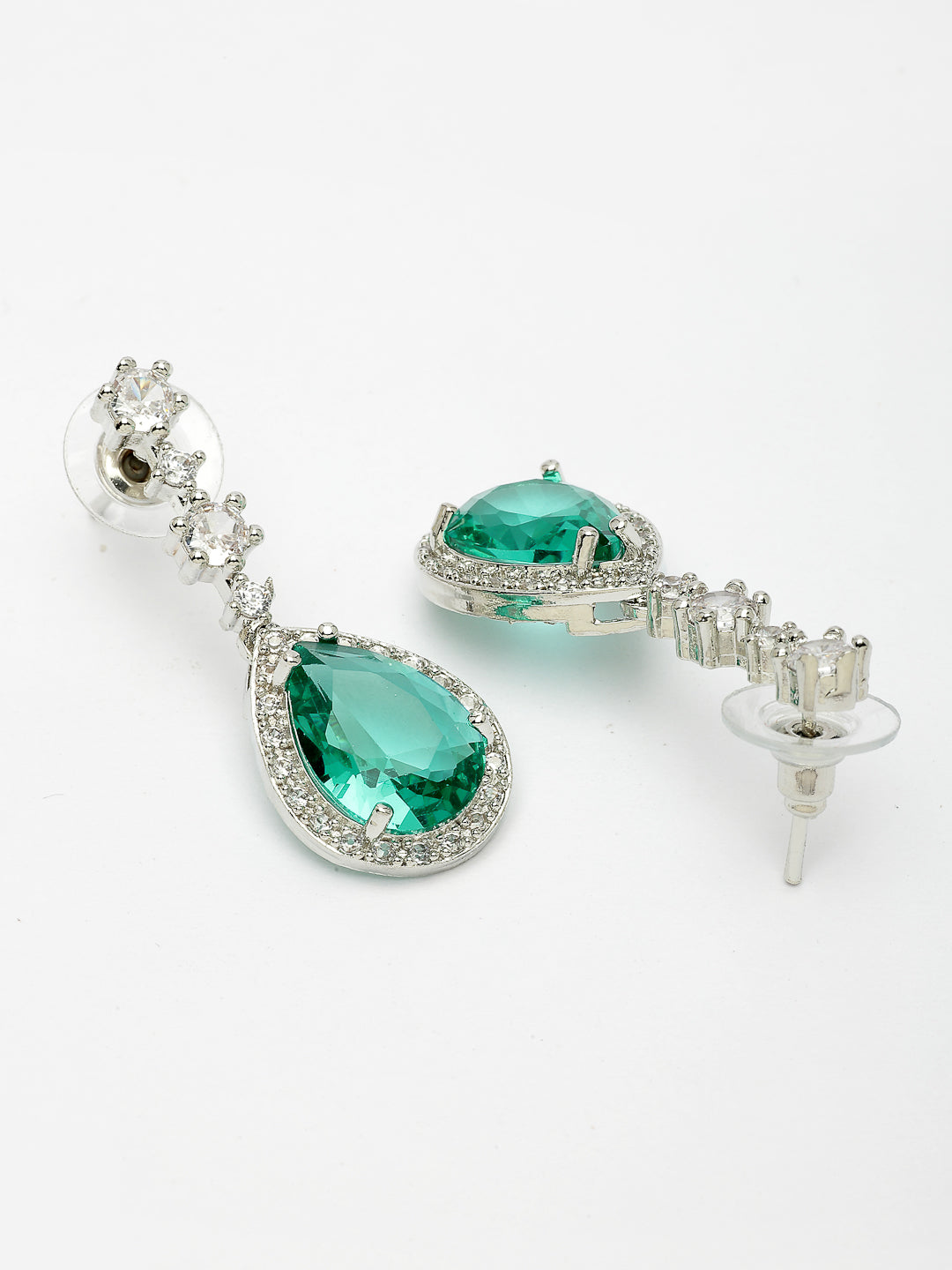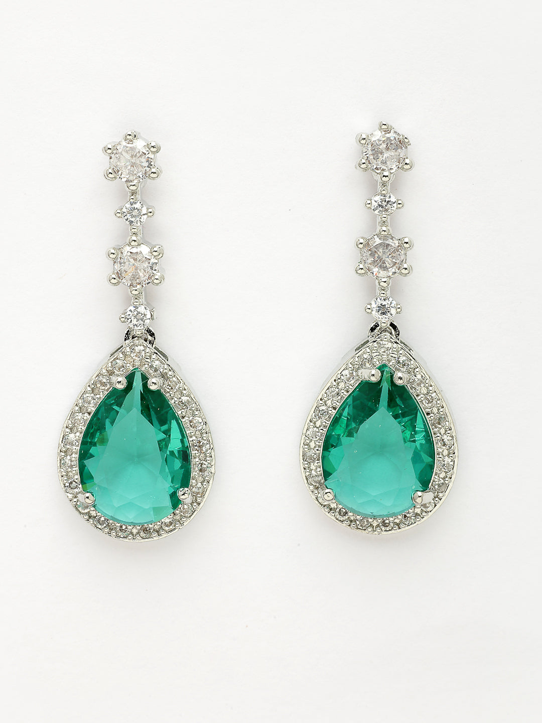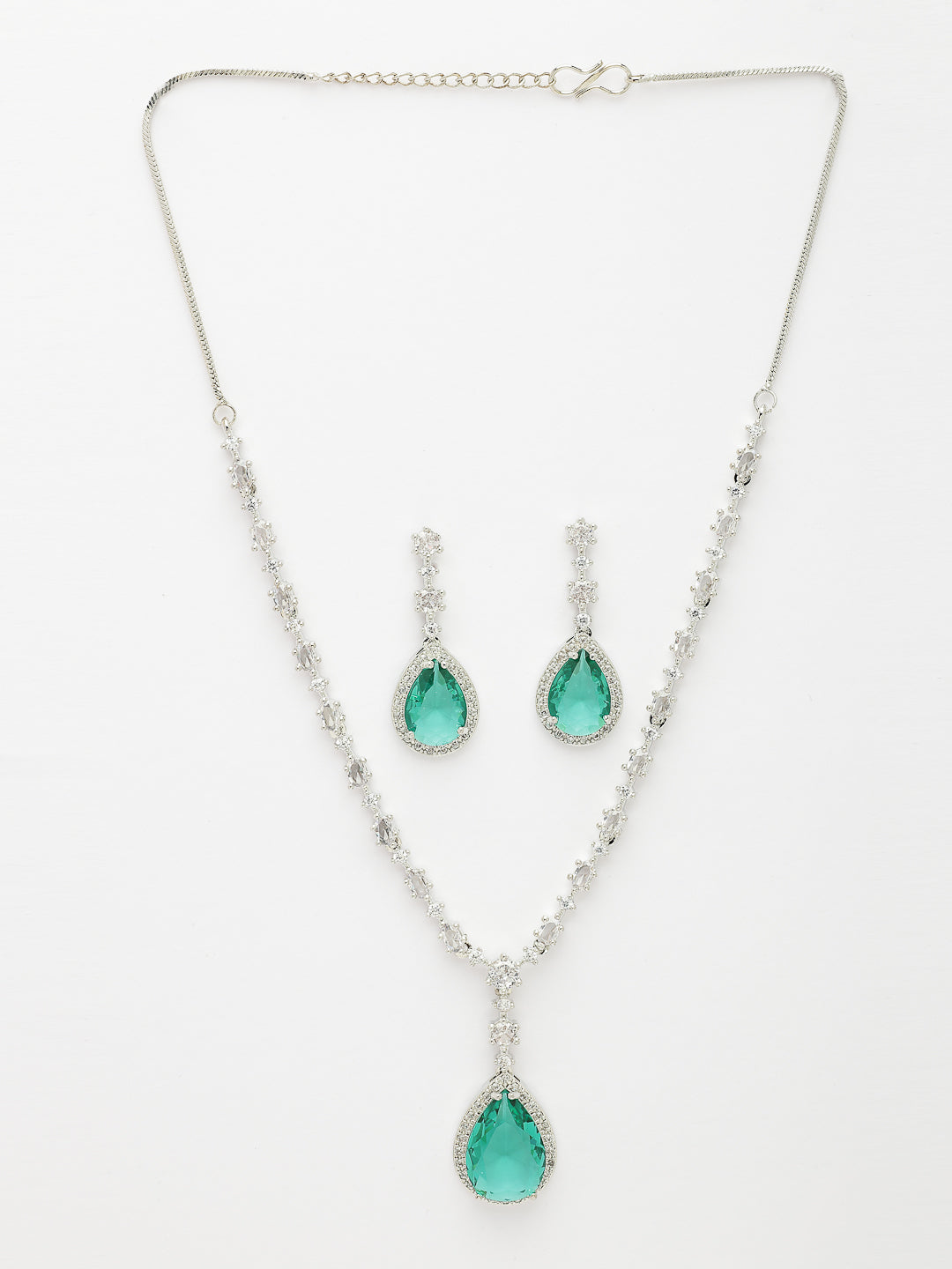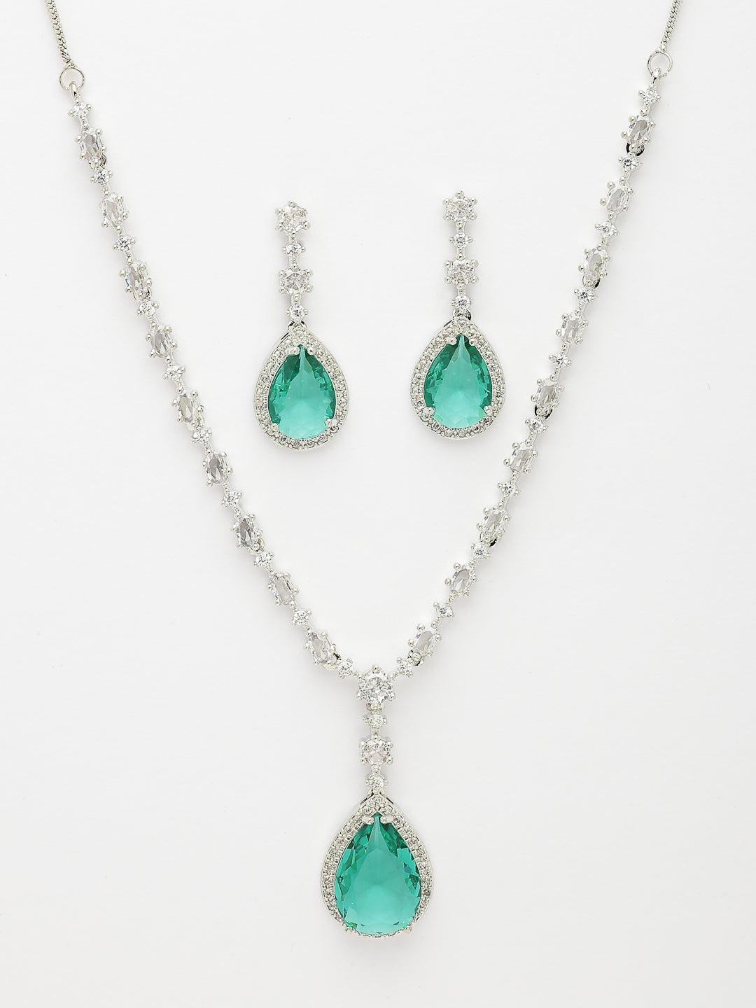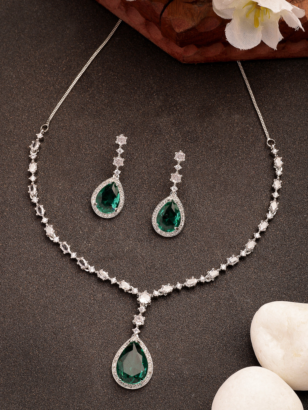 Style Note: The Nvr Women's Silver-Plated Green American Diamond-Studded Handcrafted Jewelry Set Offers A Striking Blend Of Elegance And Vibrant Color. Adorned With Lush Green American Diamonds Set In A Sleek Silver-Plated Finish, Each Handcrafted Piece Shines With A Unique, Refined Charm. The Rich Green Tones Add A Sophisticated Pop Of Color, Perfect For Making A Statement At Special Occasions Or Enhancing Everyday Outfits With A Touch Of Glamour. Lightweight And Comfortable, This Set Provides Versatile Styling Options While Showcasing Exceptional Craftsmanship. Ideal For Those Who Appreciate Bold Color And Modern Elegance, It’S A Standout Addition To Any Jewelry Collection.
