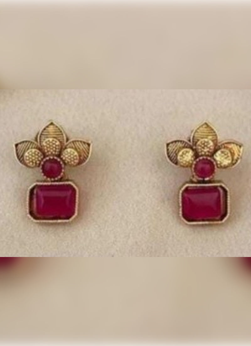 • Matching Floral Stud Earrings With Ruby Centerpieces