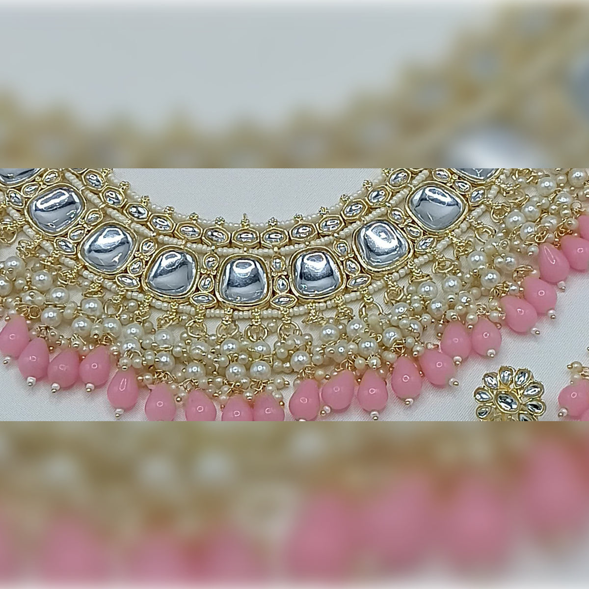 Women's Luxurious Kundan Choker Set With Pearl And Pink Bead Accents - Traditional Indian Bridal Jewelry