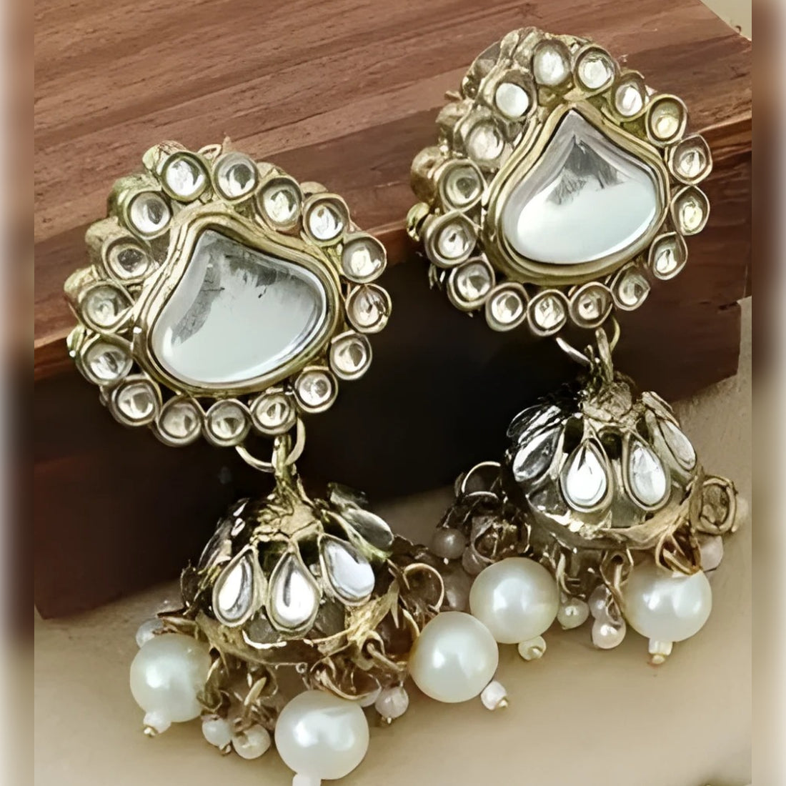 • Statement Jhumka Earrings With Intricate Kundan Detailing And Dangling Pearls That Create Beautiful Movement