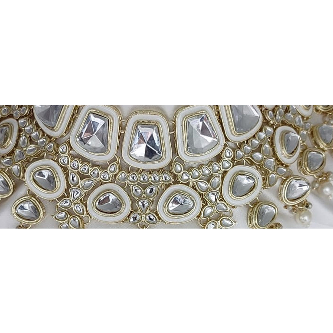 Women's Crystal Glass Kundan Choker Set With Maang Tikka - Royal Wedding Collection (Premium Pearl Drops)