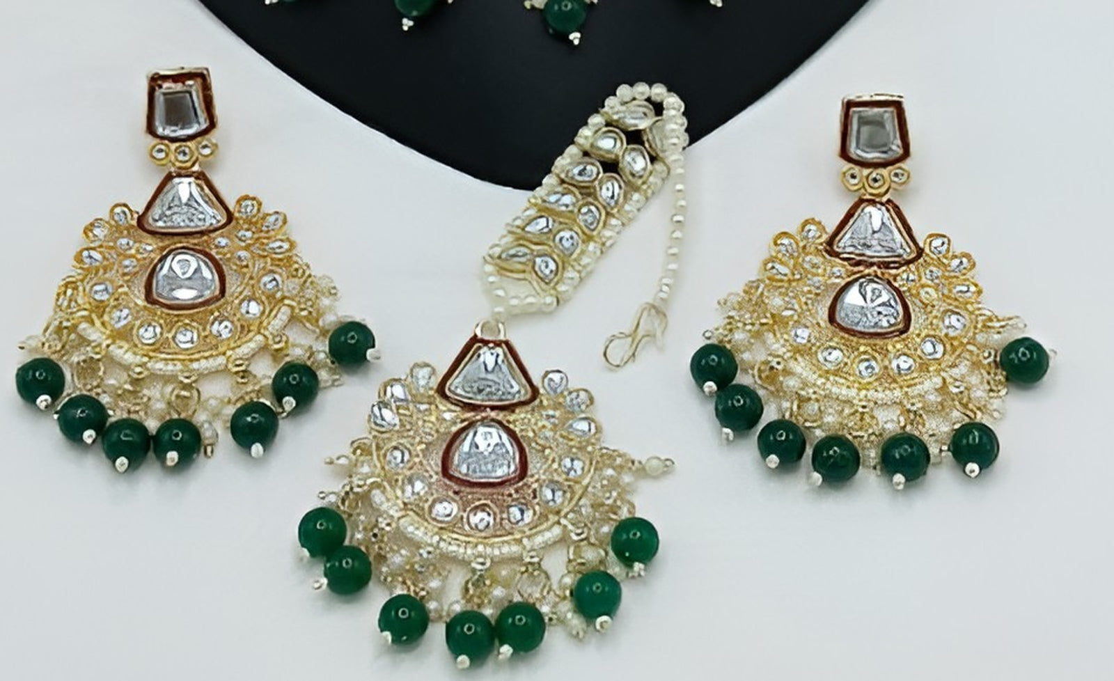This Contemporary Take On Traditional Bridal Jewelry Perfectly Complements Modern Fusion Wear, Designer Sarees, And Innovative Lehenga Designs. The Unique Geometric Pattern Creates A Bold Statement While Maintaining Classic Elegance. The Hand Work Adds A Subtle Pop Of Color That Pairs Beautifully With Pastels And Jewel Tones Alike.
