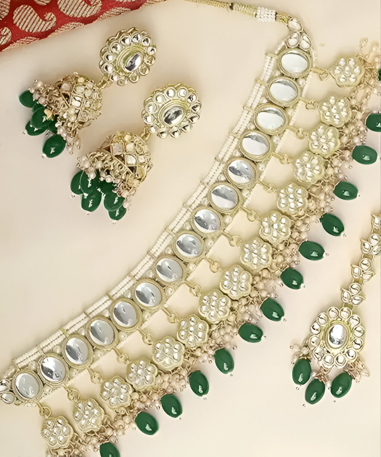 Elegant Pearl Choker Necklace Set With Maang Tikka And Jhumka Earrings - Traditional Indian Bridal Jewelry Collection