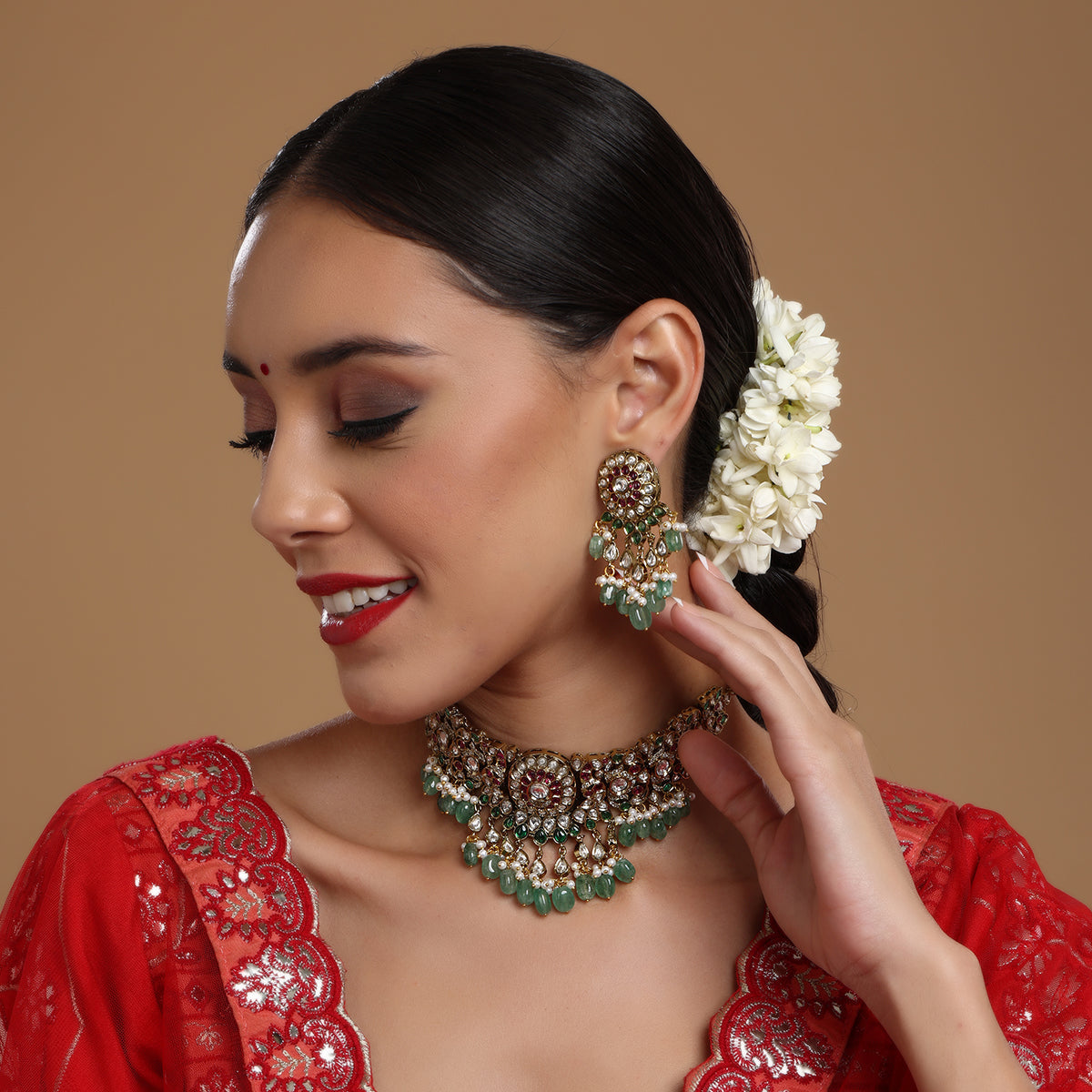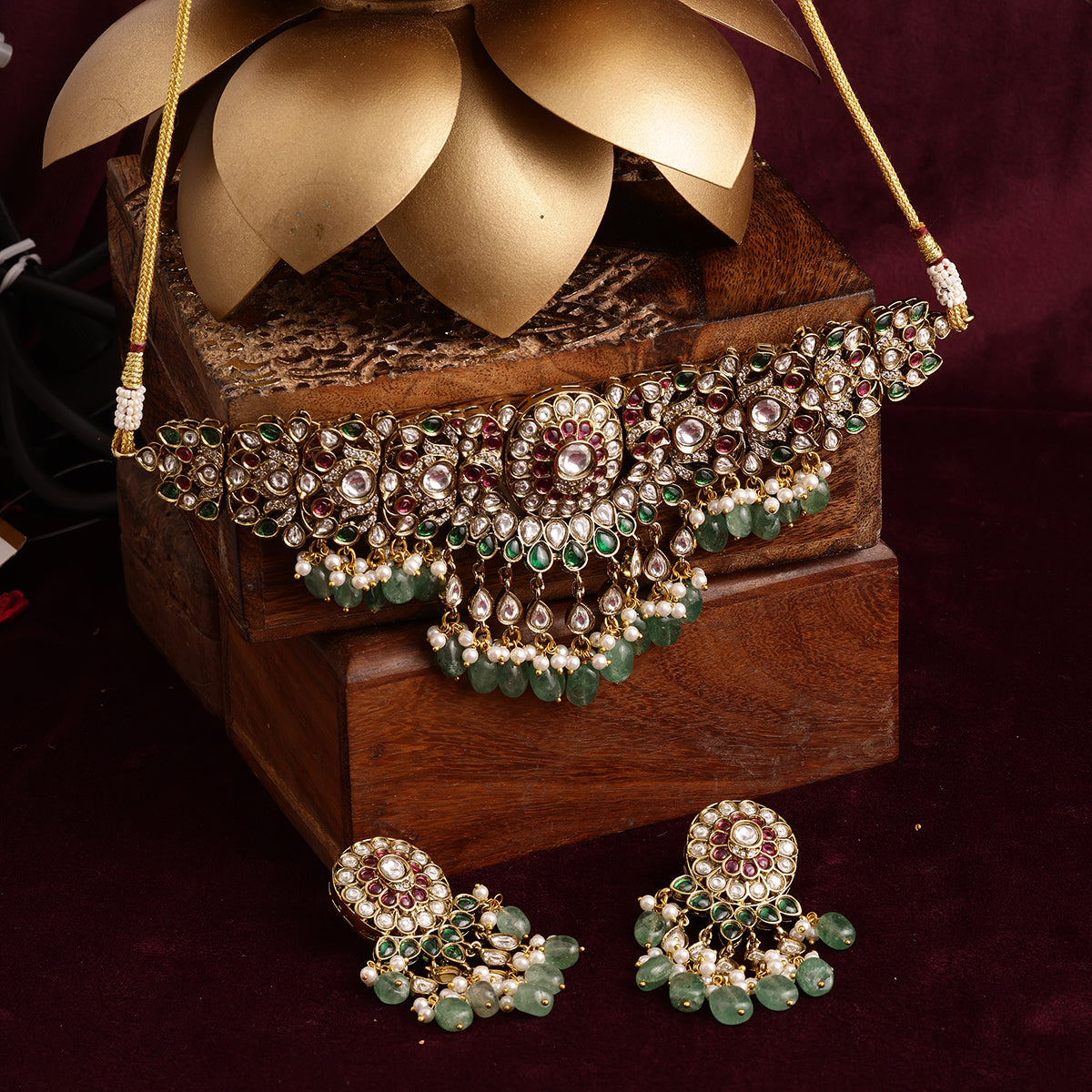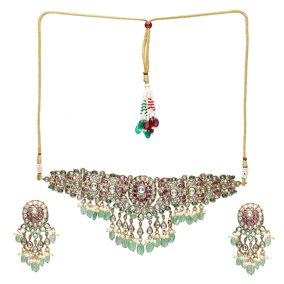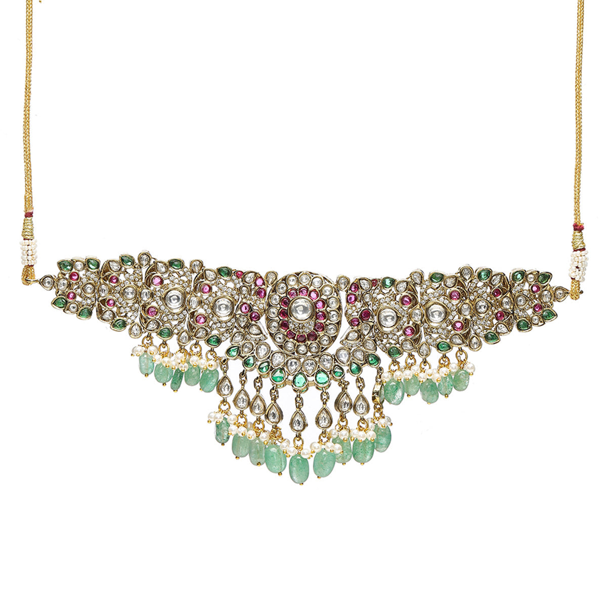 Composition :Brass, Semi Precious Stones, Kundan, Pearls