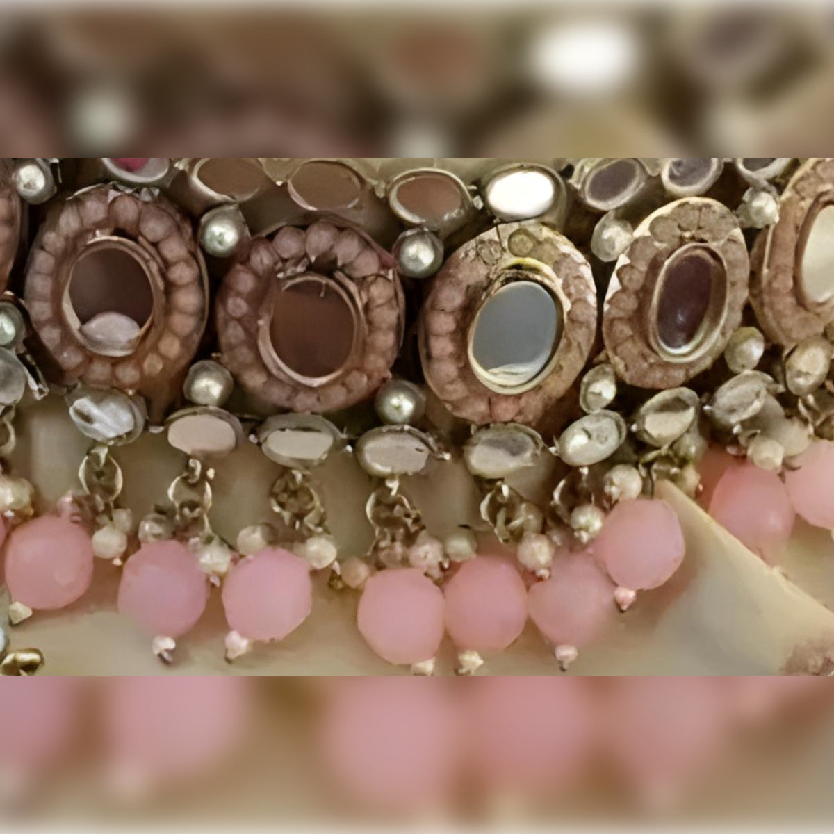 • Wide Kundan Choker With Intricate Oval Mirror Work