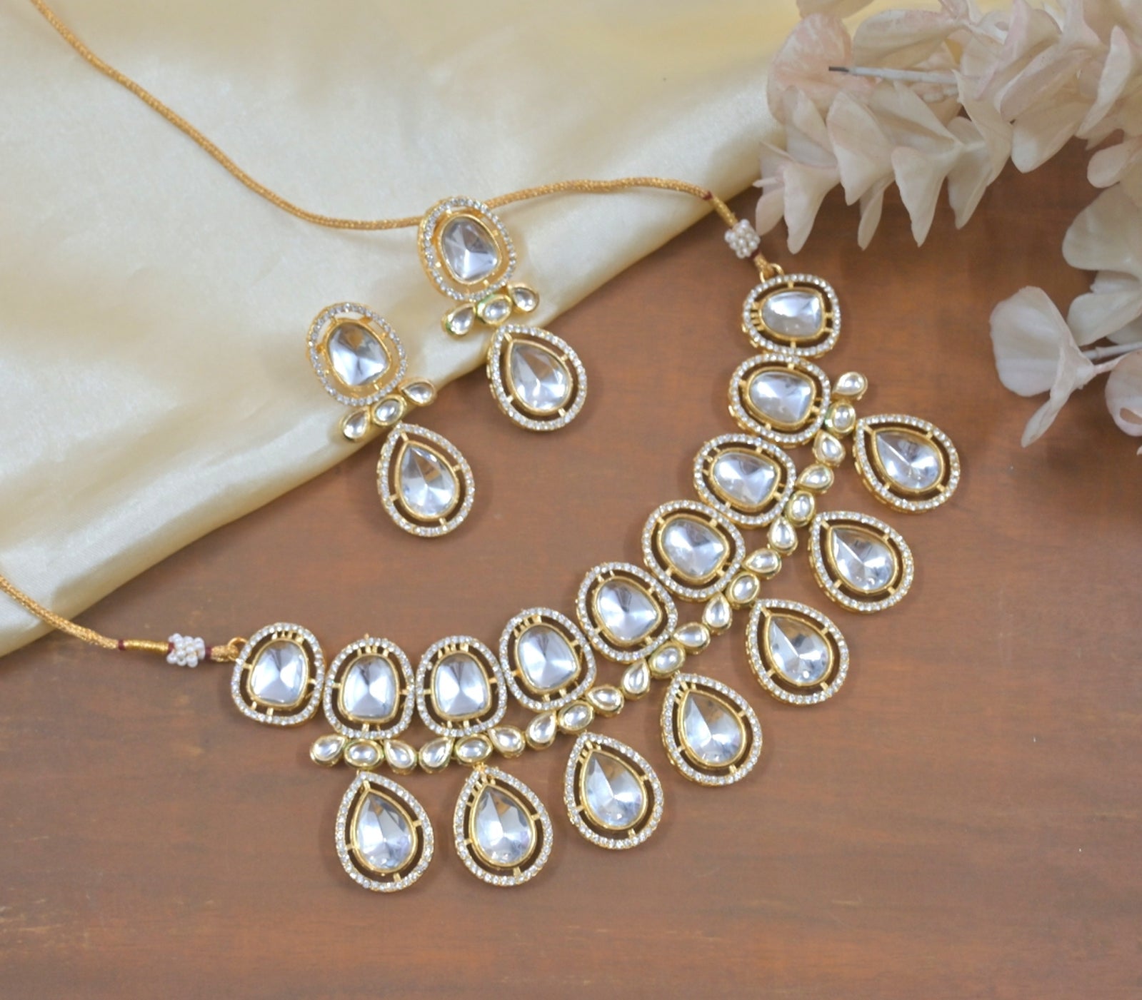 Each Piece Showcases Exceptional Attention To Detail, From The Precisely Arranged Teardrop Crystals To The Meticulously Crafted Settings. The Brilliant Sparkle Of The American Diamonds Against The Gold-Plated Base Creates A Luxurious Look That Photographs Beautifully And Makes A Lasting Impression.