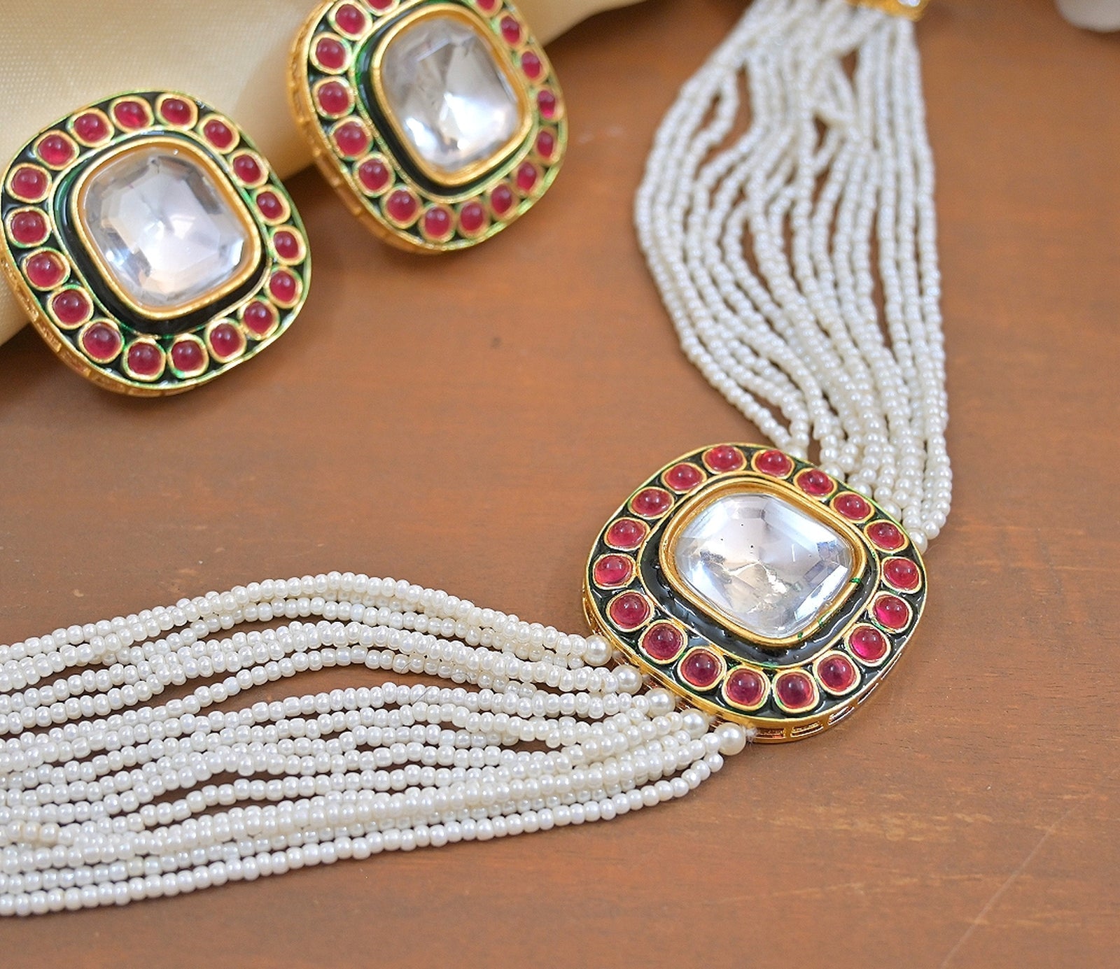 Perfect For Weddings, Festivals, And Formal Occasions, This Versatile Set Complements Both Traditional Lehengas And Modern Indo-Western Outfits. The Classic Combination Of Pearls And Kundan Work Makes It A Timeless Addition To Your Jewelry Collection. The Multi-Strand Pearl Design Offers Adjustable Styling Options To Suit Different Necklines.