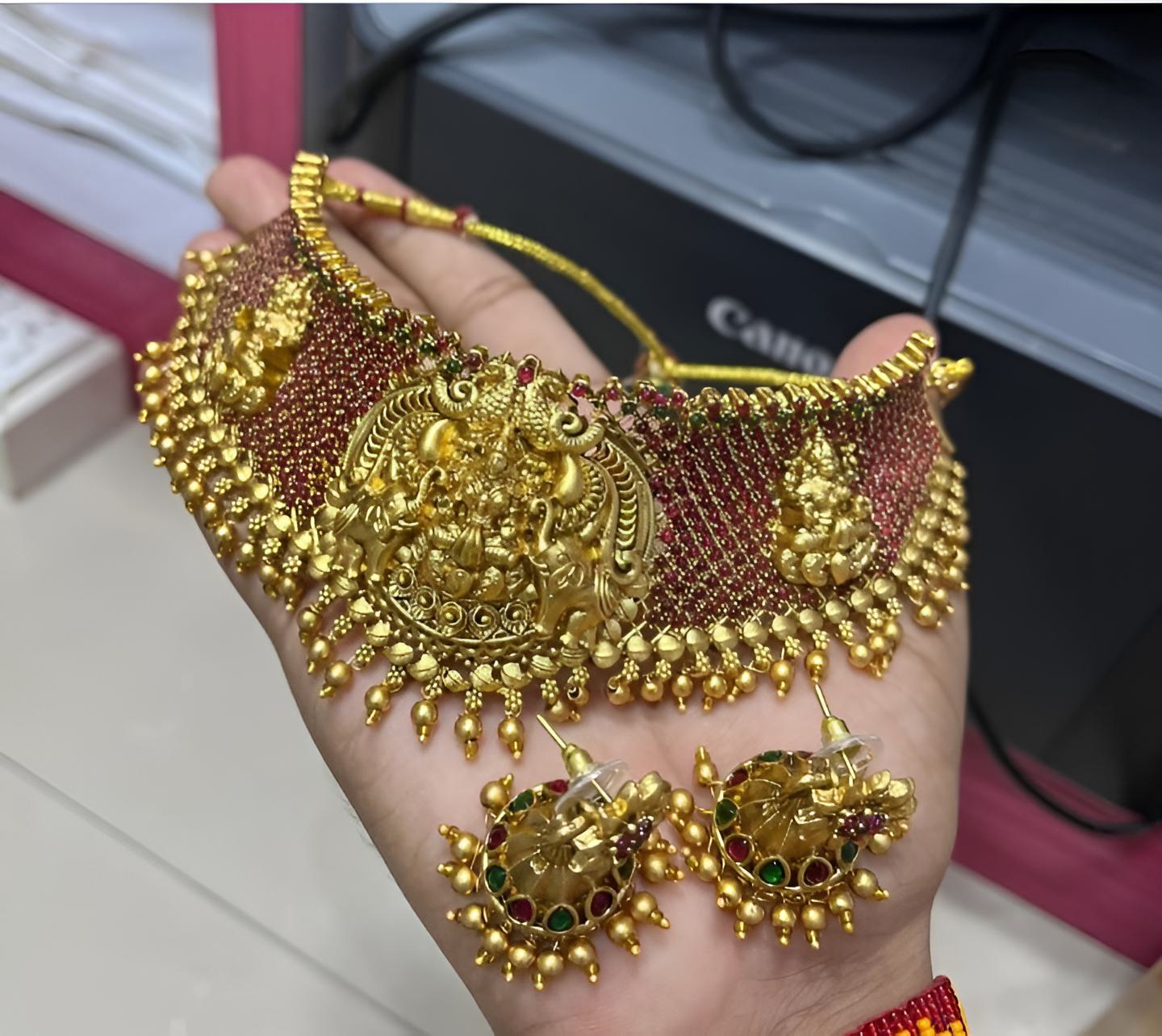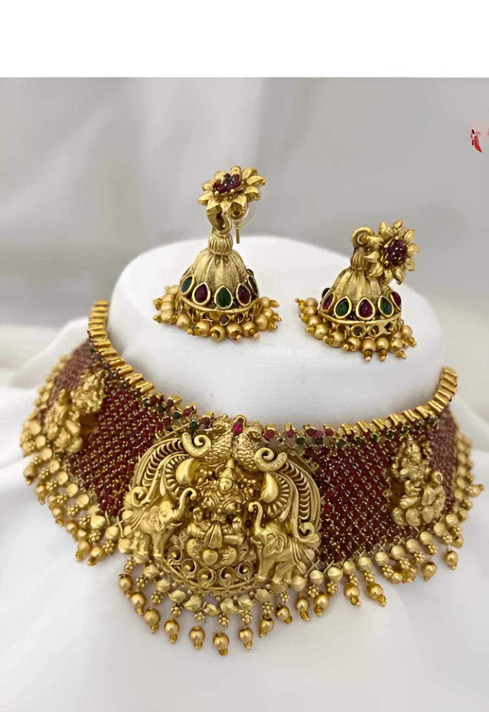Ideal For Weddings, Engagement Ceremonies, And Other Formal Events, This Luxurious Necklace Set Will Beautifully Complement Both Classic And Contemporary Indian Attire. The 22K Gold-Plated Finish And Rich Gemstone Accents Create An Eye-Catching, Regal Look That Is Sure To Make You The Center Of Attention.