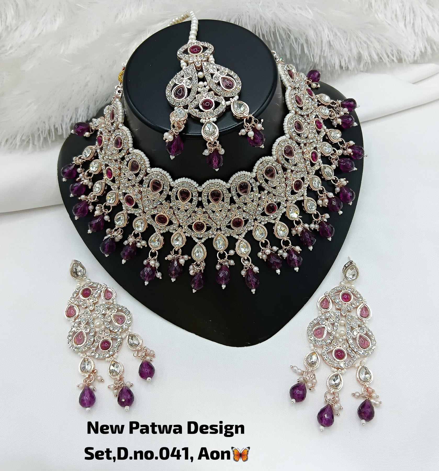 Purple Stone Work Necklace Set